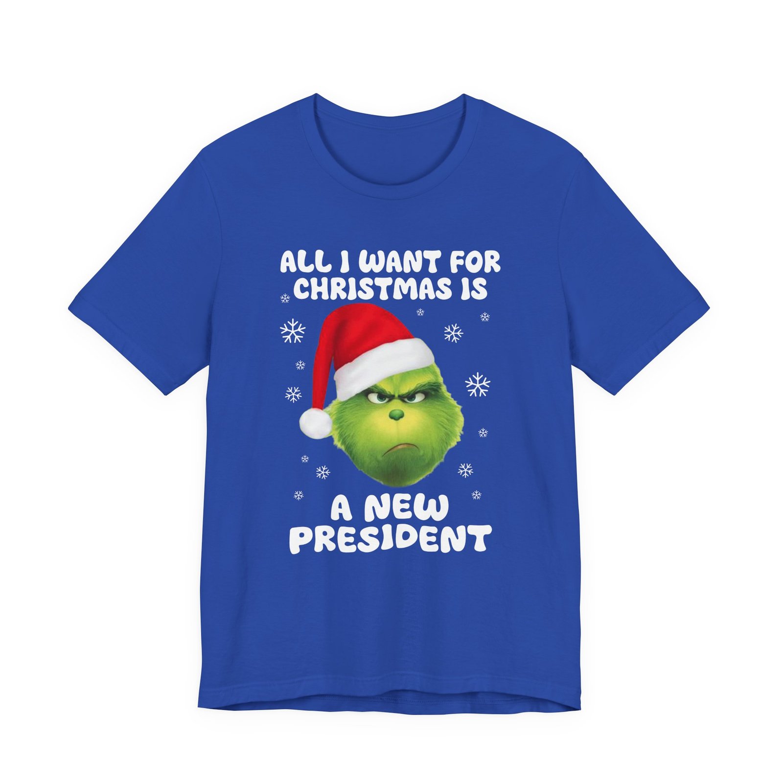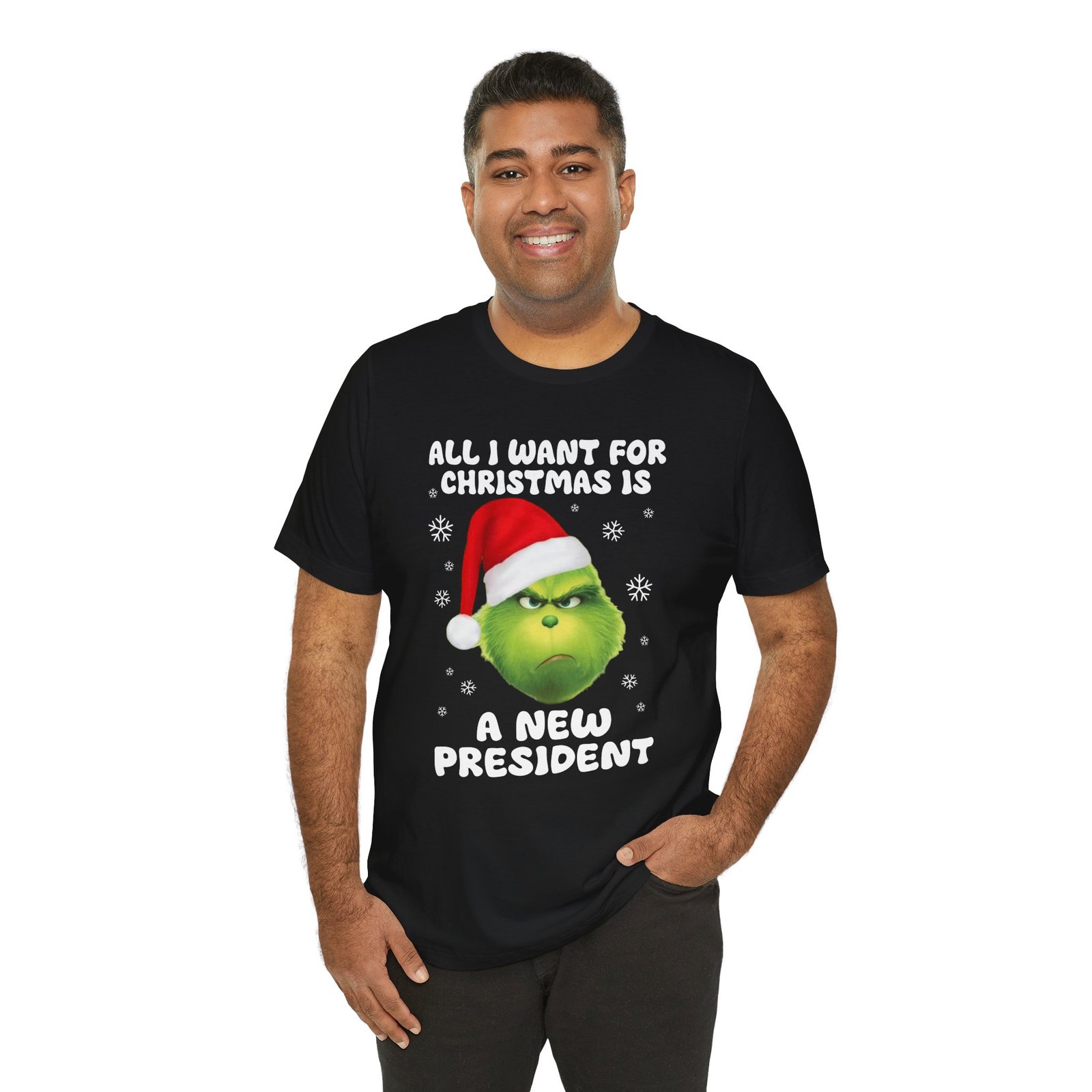 Make your holiday statement loud and clear with this “All I Want for Christmas Is a New President” T-shirt. A bold, funny, and festive political tee perfect for holiday parties, casual wear, or gifting someone with a sense of humor this season.