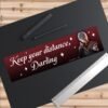 Astarion “Keep Your Distance Darling” bumper sticker inspired by Baldur’s Gate 3 is the perfect gift for gamers, RPG fans, and D&D lovers. Funny vampire humor car decal for laptops, trucks, or SUVs. High-quality vinyl, weatherproof, durable, and long-lasting. Great novelty gift for Baldur’s Gate players, fantasy fans, vampire enthusiasts, cosplay lovers, or anyone who enjoys gaming stickers. Show your love for Astarion with this hilarious fandom car accessory that makes driving fun. Perfect collectible for gamers, geek culture fans, and sticker collectors.