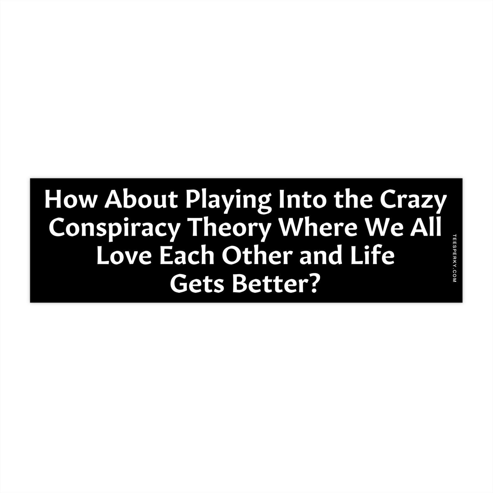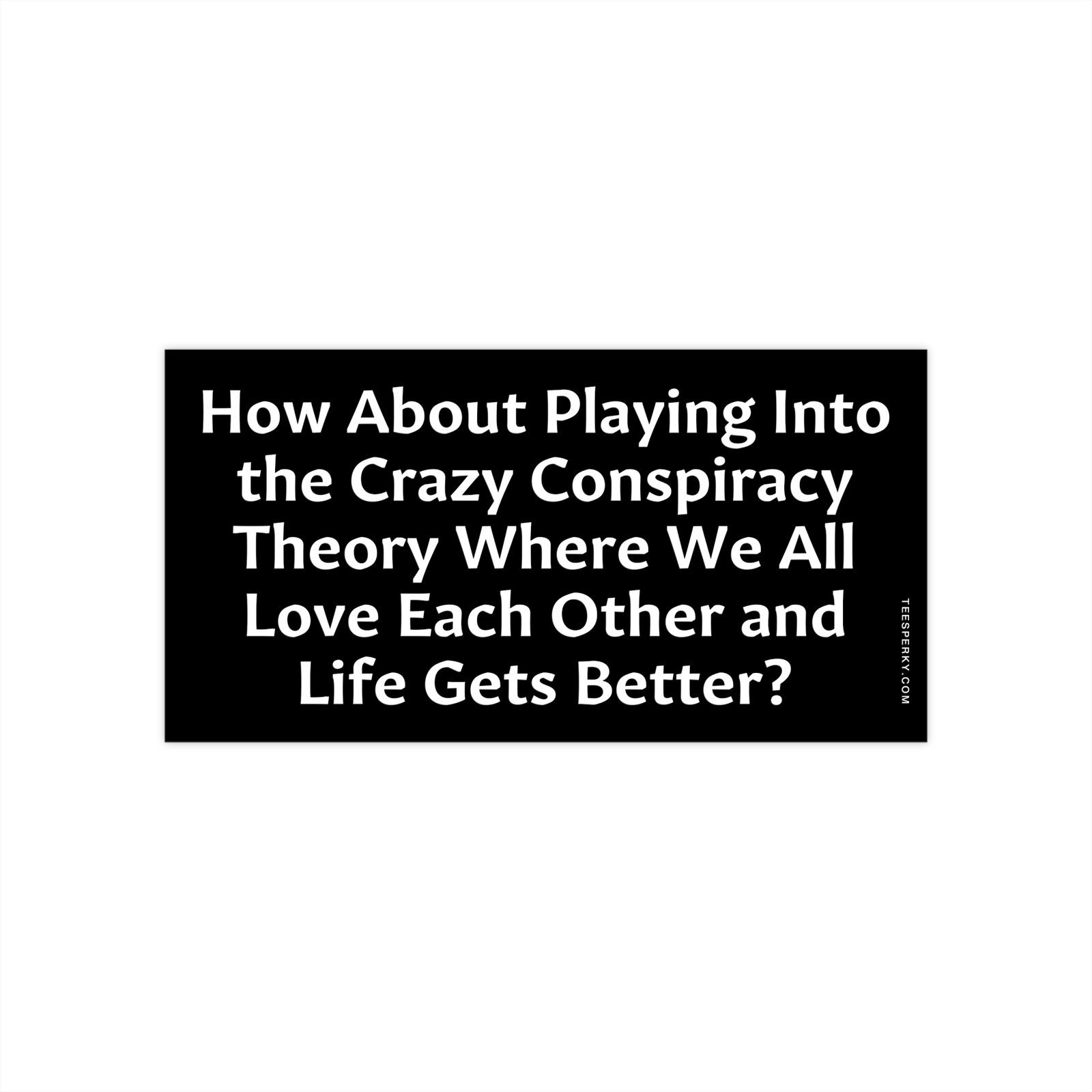 How about playing into the crazy conspiracy theory where we all love each other and life gets better? This bumper sticker blends satire and hope with a bold, feel-good message. Perfect for cars, laptops, or any spot that needs a reminder that kindness isn’t a conspiracy—it’s a revolution. Durable, waterproof, and made to spark smiles and conversations.