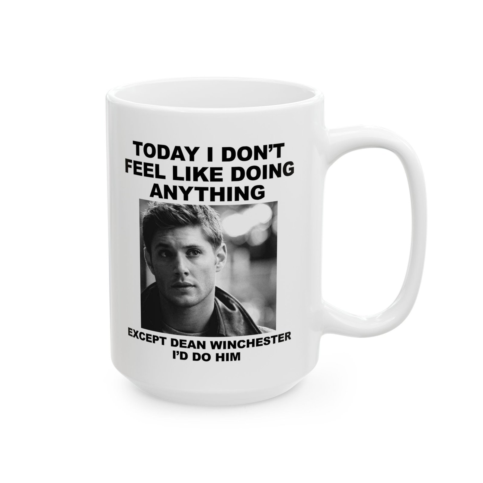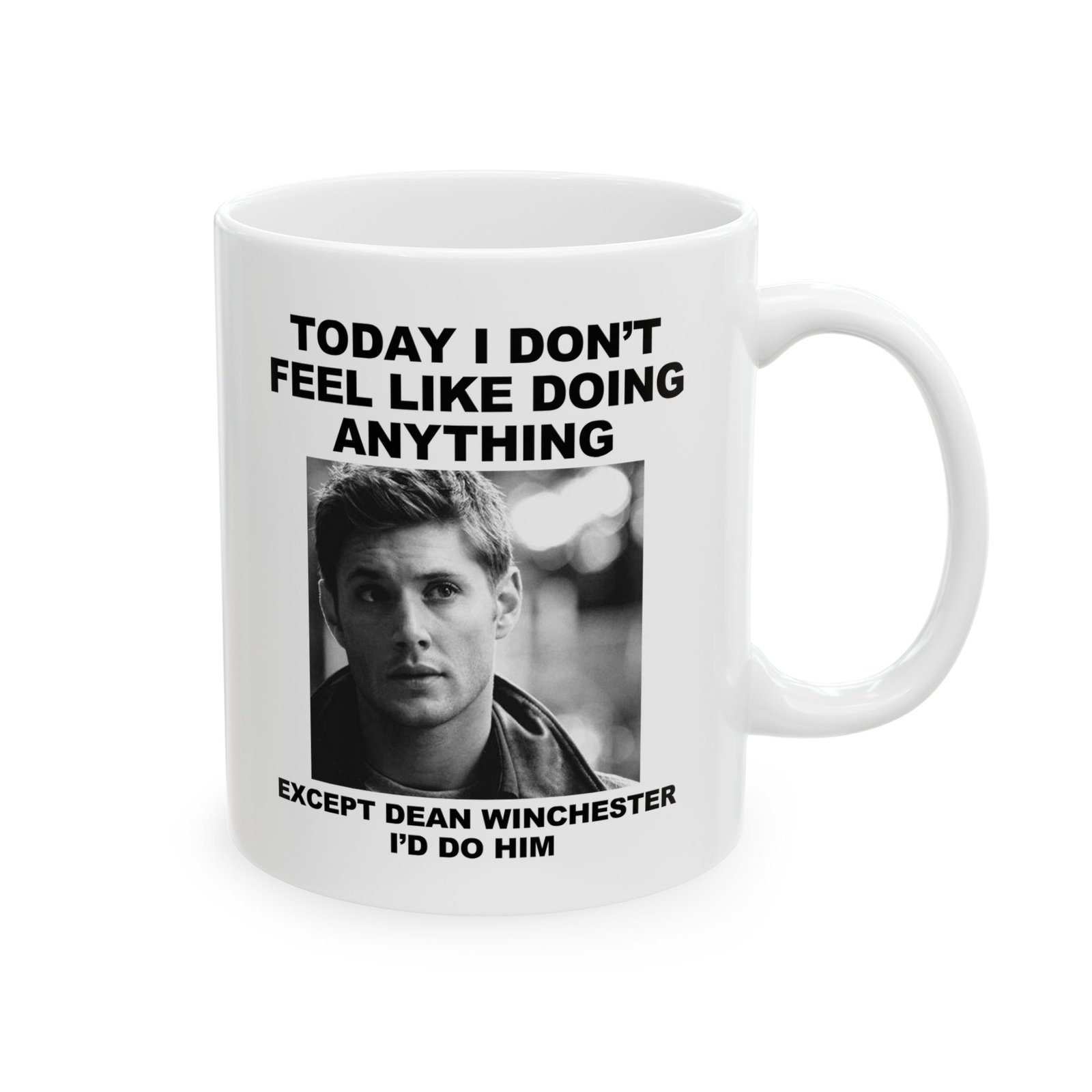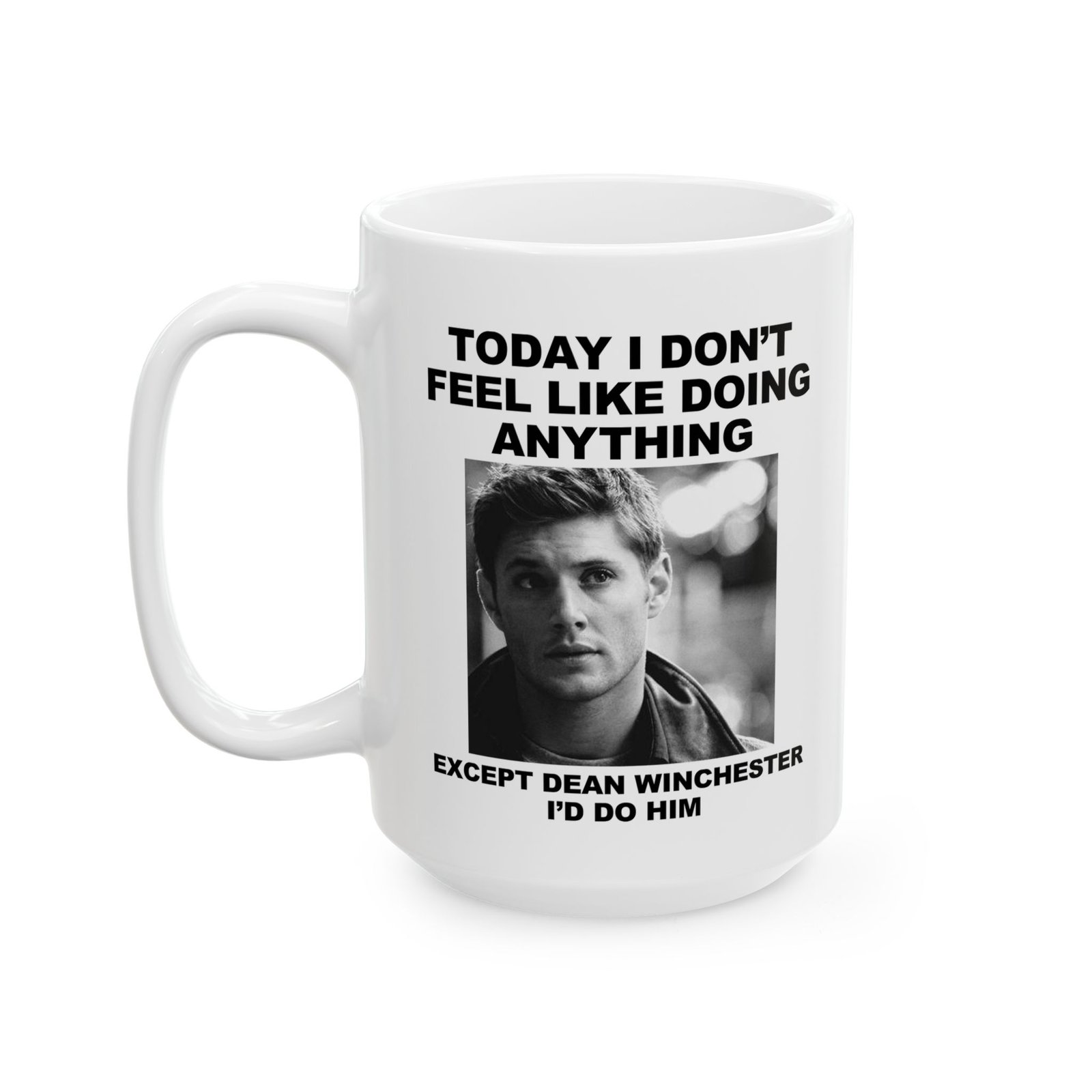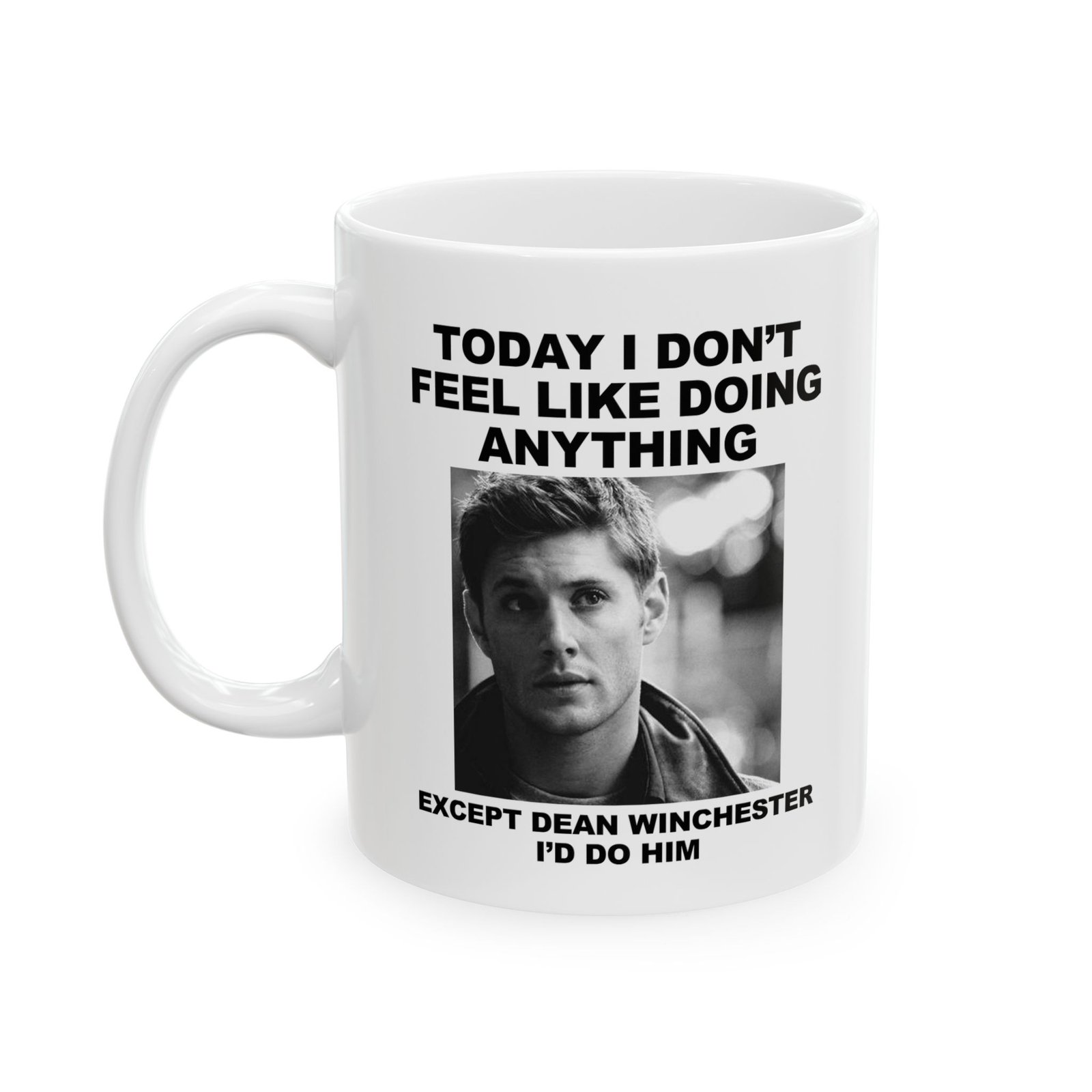 Start your day with laughter using this “Today I Don’t Feel Like Doing Anything Except Dean Winchester I’d Do Him” mug. Perfect gift for Supernatural fans, Dean Winchester lovers, and anyone obsessed with Jensen Ackles. Funny novelty coffee cup for binge-watching Supernatural, fandom meetups, or everyday use. Great birthday, holiday, or gag gift for TV show fans who can’t get enough of Dean. Durable ceramic, dishwasher safe, and microwave safe. A must-have fandom mug for collectors, pop culture enthusiasts, and coffee lovers.