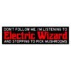 Funny bumper sticker Don’t follow me, i’m listening to Electric Wizard and stopping to pick mushrooms, stoner humor sticker, psychedelic bumper sticker, doom metal sticker, rock music car decal, funny car sticker, sarcastic bumper sticker, novelty gift, weed humor sticker, music lover sticker, band fan sticker, car humor decal, alternative music sticker, vinyl bumper sticker, weatherproof car decal, road trip humor, dark humor sticker, metalhead gift, mushroom joke sticker, trippy car accessory, cult band sticker, ironic bumper decal, underground music sticker, funny warning sticker, driver humor, car accessory gift.