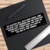 This funny electric bill bumper sticker jokes about being charged for sunlight, moonlight, streetlight, the Holy Spirit, and even the light at the end of the tunnel. A hilarious humor bumper sticker perfect for cars, trucks, laptops, and anyone tired of high electric bills.