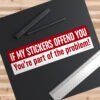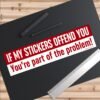 Bold “If My Stickers Offend You You’re Part of the Problem!” bumper sticker delivers a strong message with humor and attitude. Perfect for cars, laptops, water bottles, or notebooks. Great for free speech advocates, political humor fans, and bold personalities. Durable vinyl, weatherproof, easy to apply. Ideal for anti-censorship supporters, truth-tellers, rebels, and people who love edgy statements on their vehicles or gear. Makes a fun and sassy gift too!