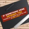 “If Something Here Offends You Please Let Us Know We Can All Use a Good Laugh” bumper sticker is a bold, funny, sarcastic decal perfect for cars, trucks, laptops, toolboxes, or garage walls. Great for dark humor lovers, offensive joke fans, political satire enthusiasts, and anyone with a wicked sense of humor. Made with durable, waterproof vinyl and ideal for expressing free speech, sarcasm, and anti-PC culture. Perfect gift for comedians, prank lovers, and people who enjoy pushing buttons and making others laugh.