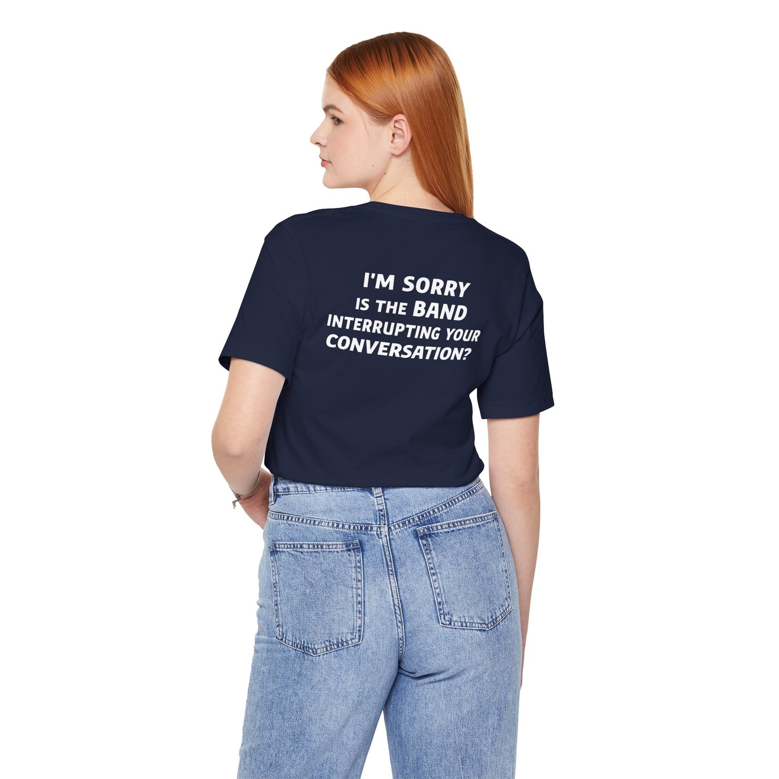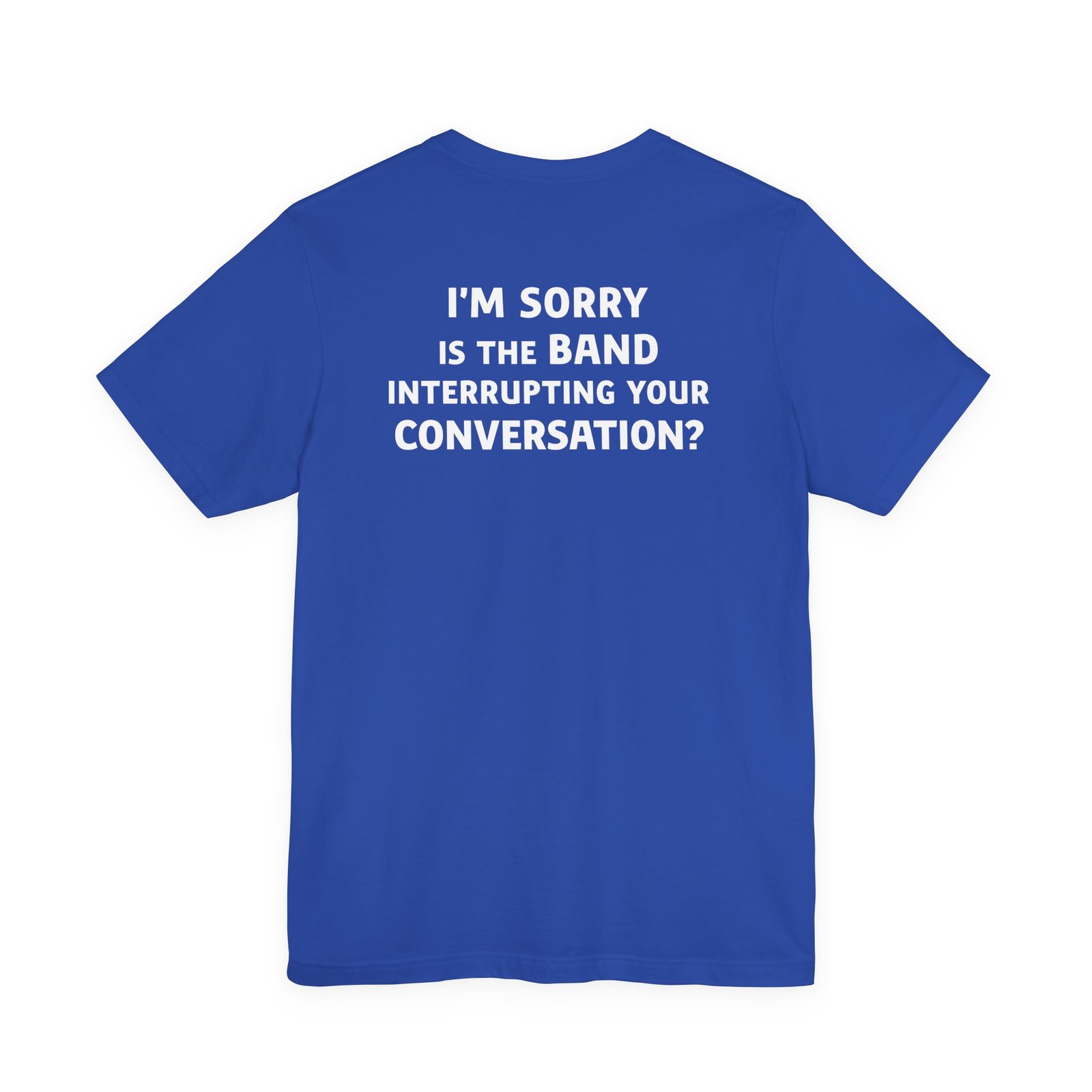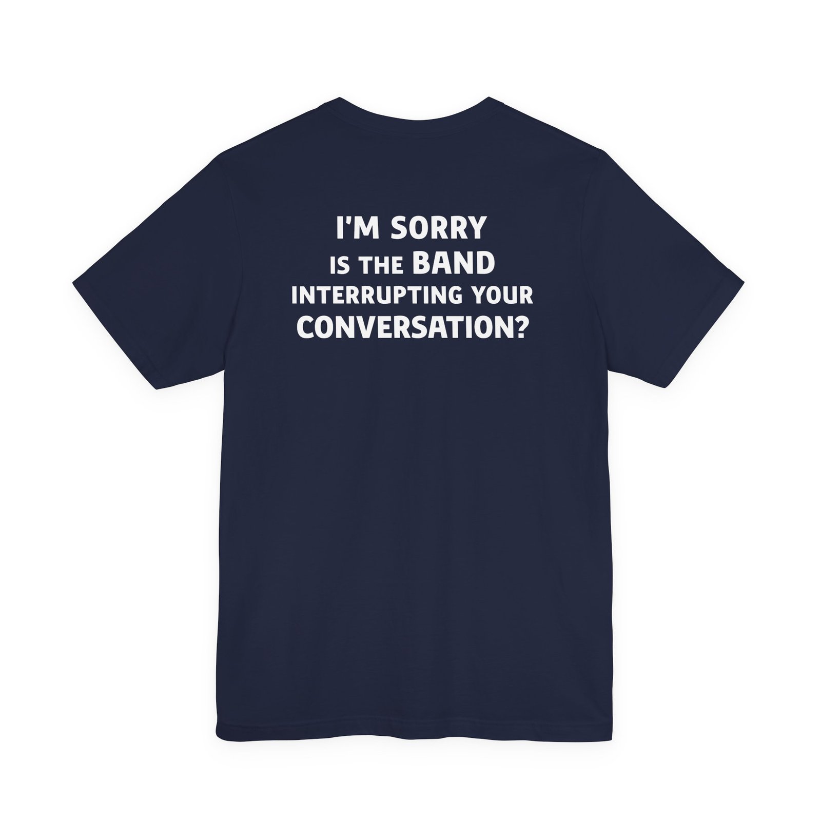 Make a bold statement with this “I’m Sorry Is the Band Interrupting Your Conversation” T-shirt — perfect for music lovers, concert fans, musicians, and sarcastic humor enthusiasts. A funny tee for drummers, guitarists, singers, and live band performers who know the struggle of talking crowds. Great for gigs, rehearsals, festivals, or everyday wear. Made from soft, high-quality cotton, this comfortable graphic shirt combines music humor, band pride, and witty attitude. Ideal gift for band members, sound engineers, DJs, and music fans with a sense of humor.
