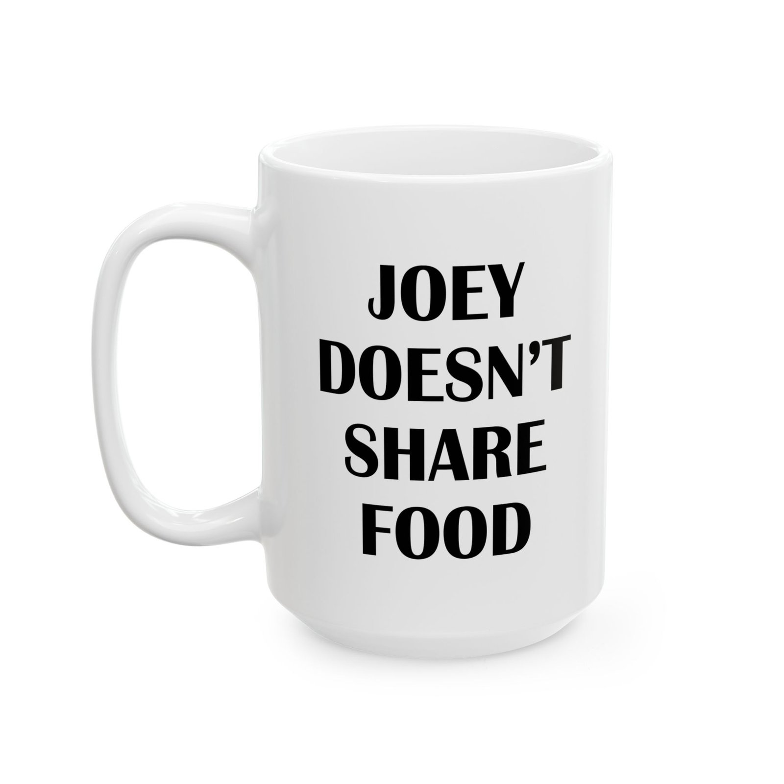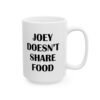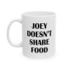 Celebrate iconic humor with this “Joey Doesn’t Share Food” mug, perfect for fans of classic TV comedy quotes. Ideal for coffee, tea, or hot chocolate lovers who value their food and laughs. A funny gift for sitcom fans, Friends lovers, coworkers, roommates, and anyone who relates to Joey’s legendary food rule. High-quality ceramic mug, great for home, office, or daily use, and a must-have for fans of funny quote mugs and pop culture drinkware.