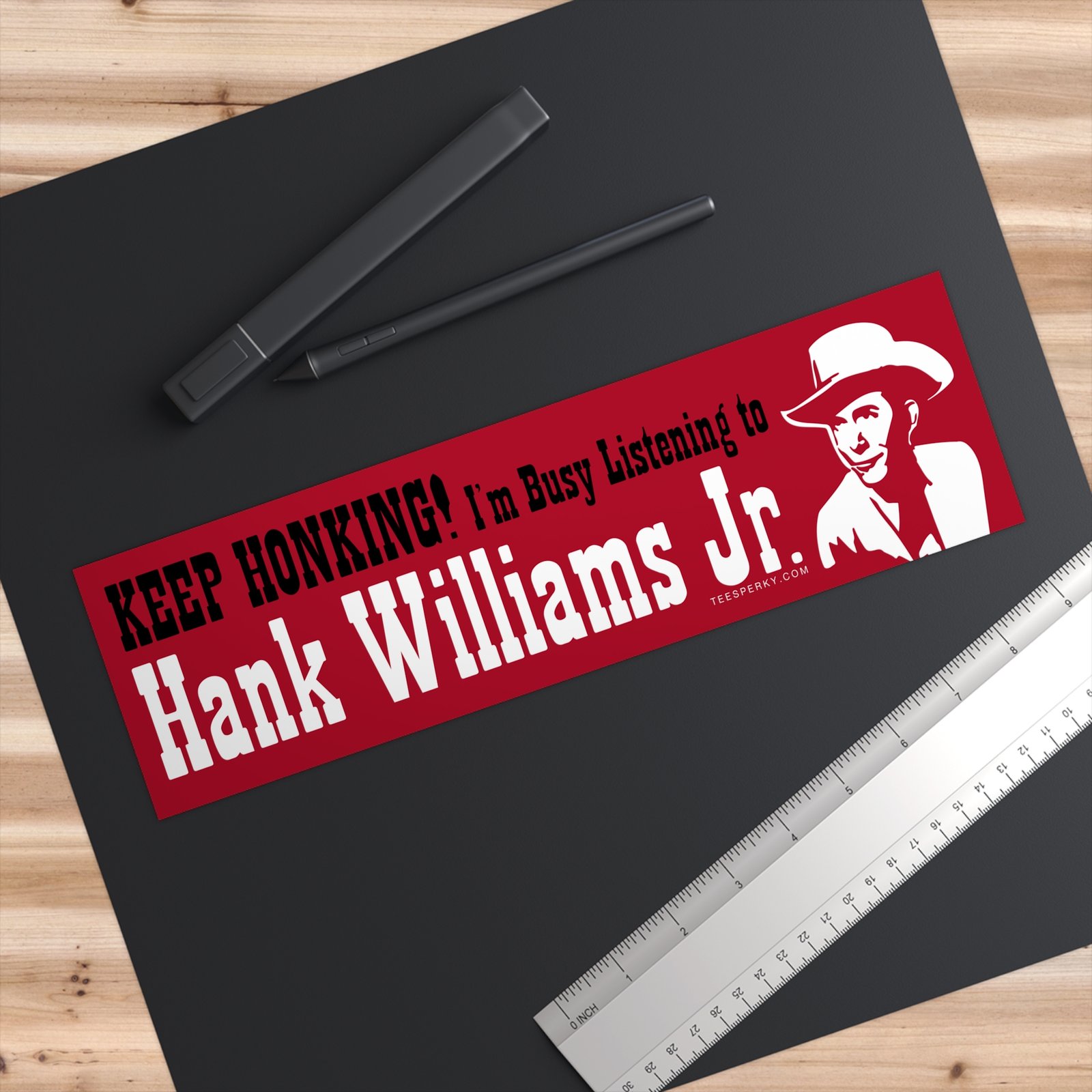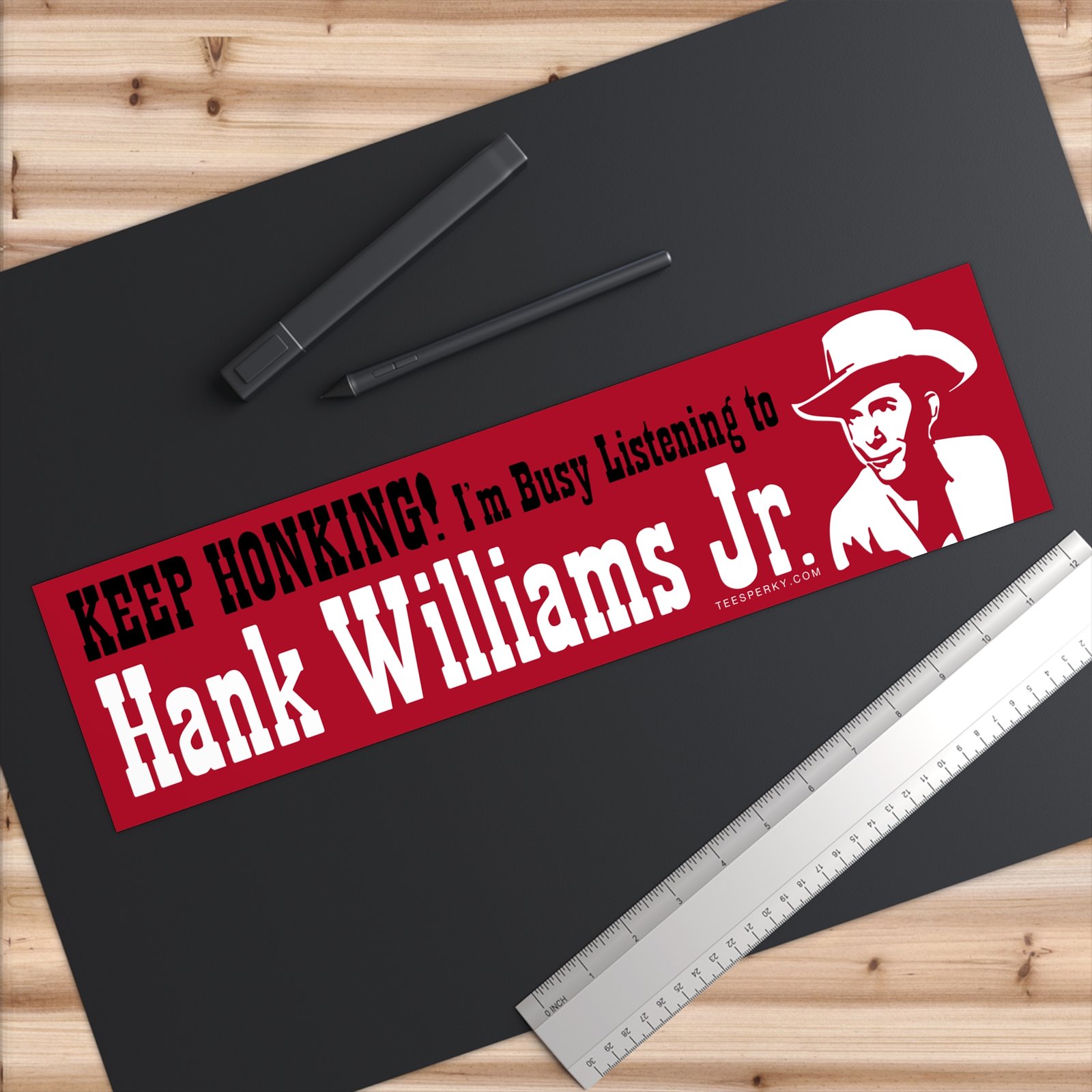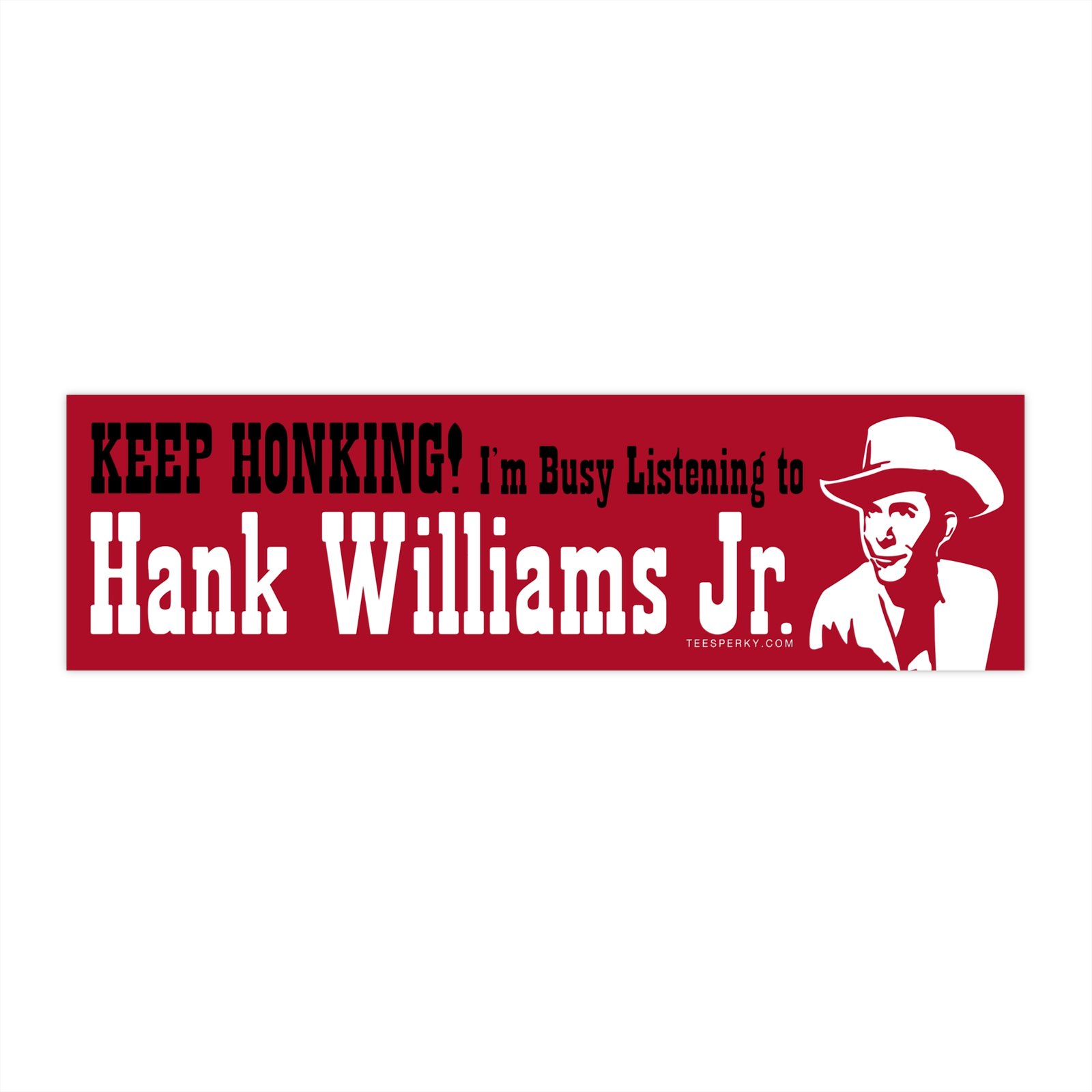 Make a statement with this funny Hank Williams Jr bumper sticker featuring the phrase “Keep Honking! I’m Busy Listening to Hank Williams Jr.” Perfect for country music fans, classic outlaw country lovers, and drivers who want to show their music pride on cars, trucks, or tailgates.