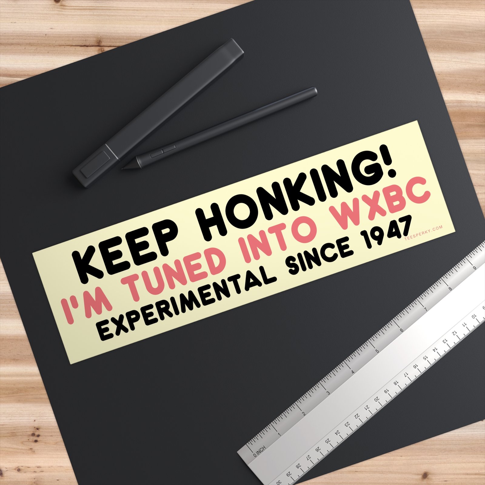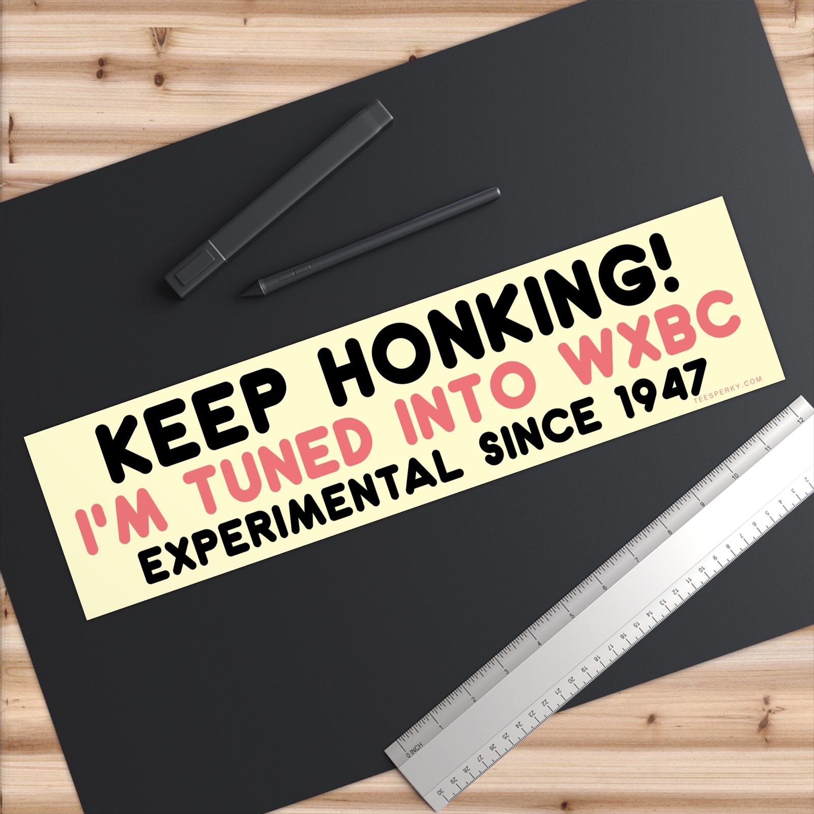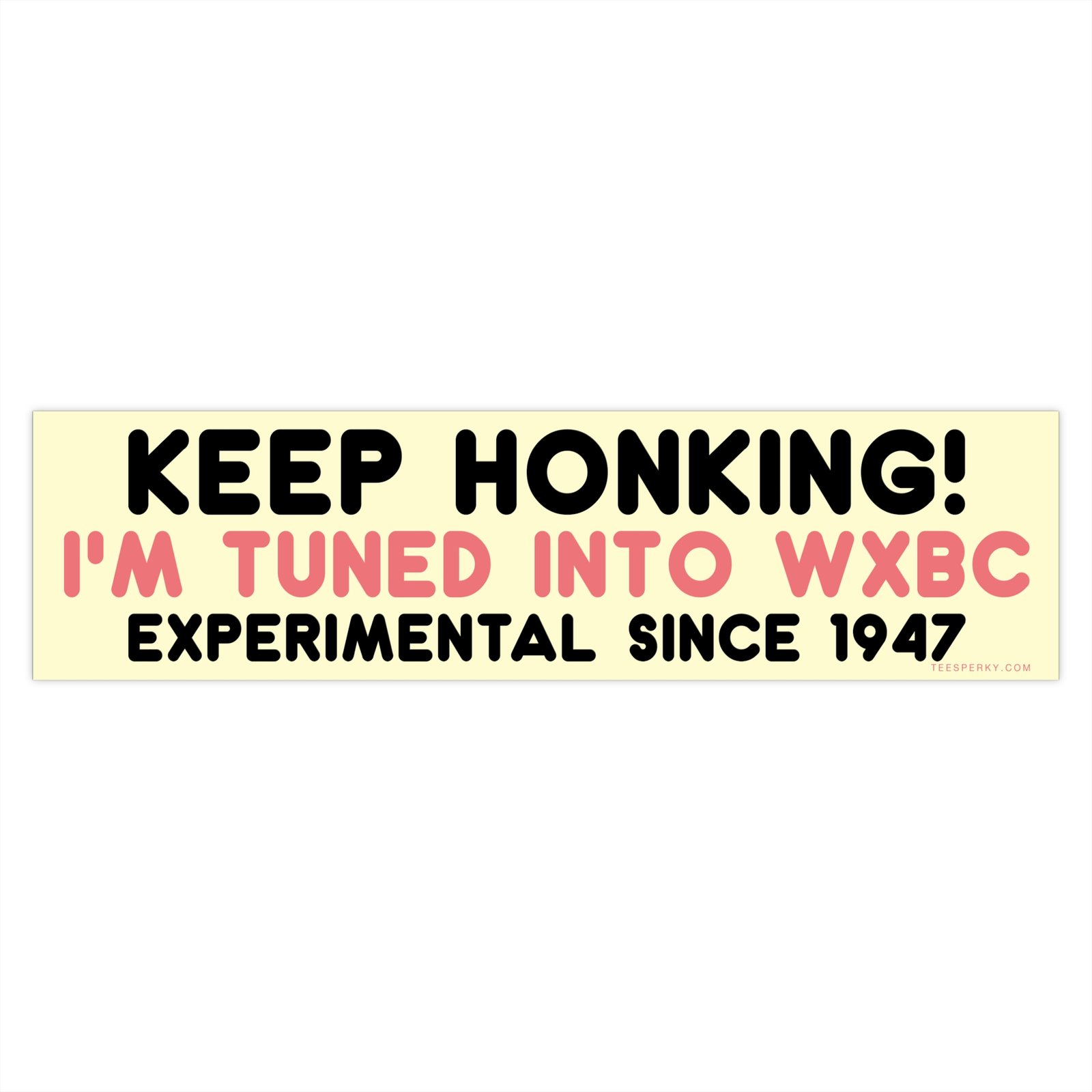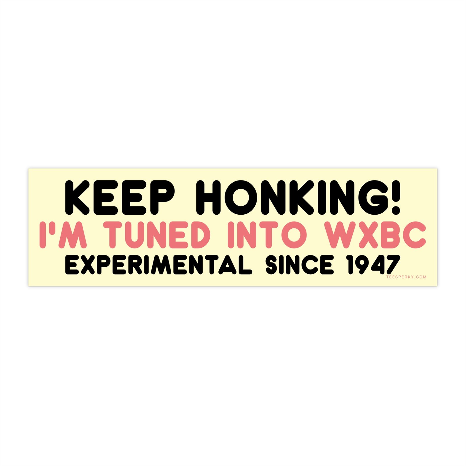 Show off your love for underground radio and experimental sound with this “Keep Honking! I’m Tuned Into WXBC Experimental Since 1947” bumper sticker. Perfect for music lovers, college radio fans, and anyone who lives for offbeat, alternative vibes. Durable, weatherproof, and guaranteed to spark curiosity on the road.