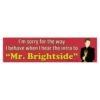 This funny bumper sticker perfectly captures how people react when they hear the intro to “Mr. Brightside.” A must-have music bumper sticker for fans who lose all self-control at the first note. Perfect for cars, laptops, water bottles, and anyone who loves iconic song moments.