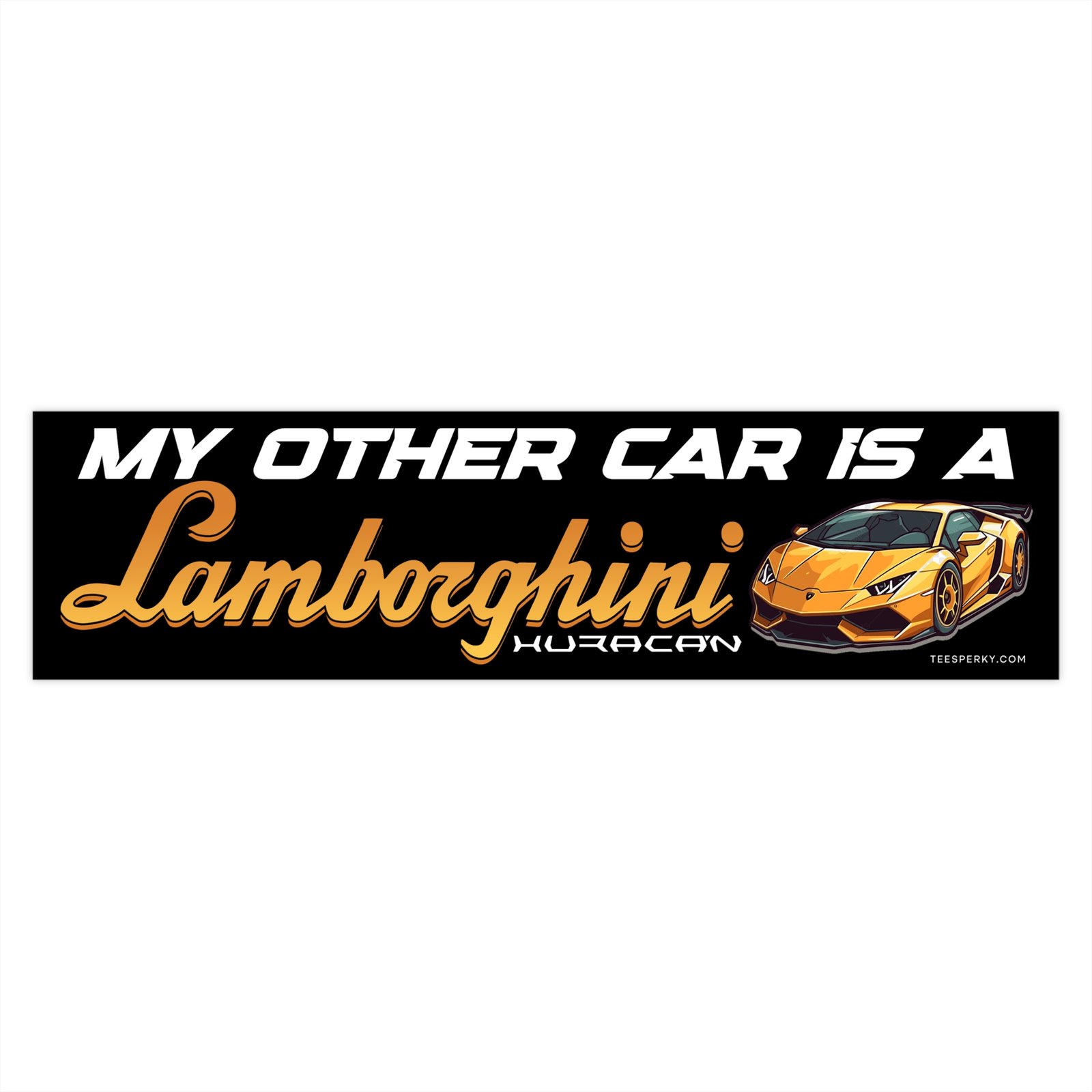 Funny “My Other Car is a Lamborghini Huracan” bumper sticker for cars, trucks, SUVs, laptops, and toolboxes. Perfect for car enthusiasts, luxury car fans, Lambo lovers, exotic car collectors, supercar drivers, and automotive humor fans. Durable vinyl decal adds humor to any vehicle. Great novelty sticker gift for dads, moms, brothers, mechanics, racing fans, and sports car owners. Make people smile with this luxury car parody sticker, ideal for car meets, car shows, garages, or your daily driver.