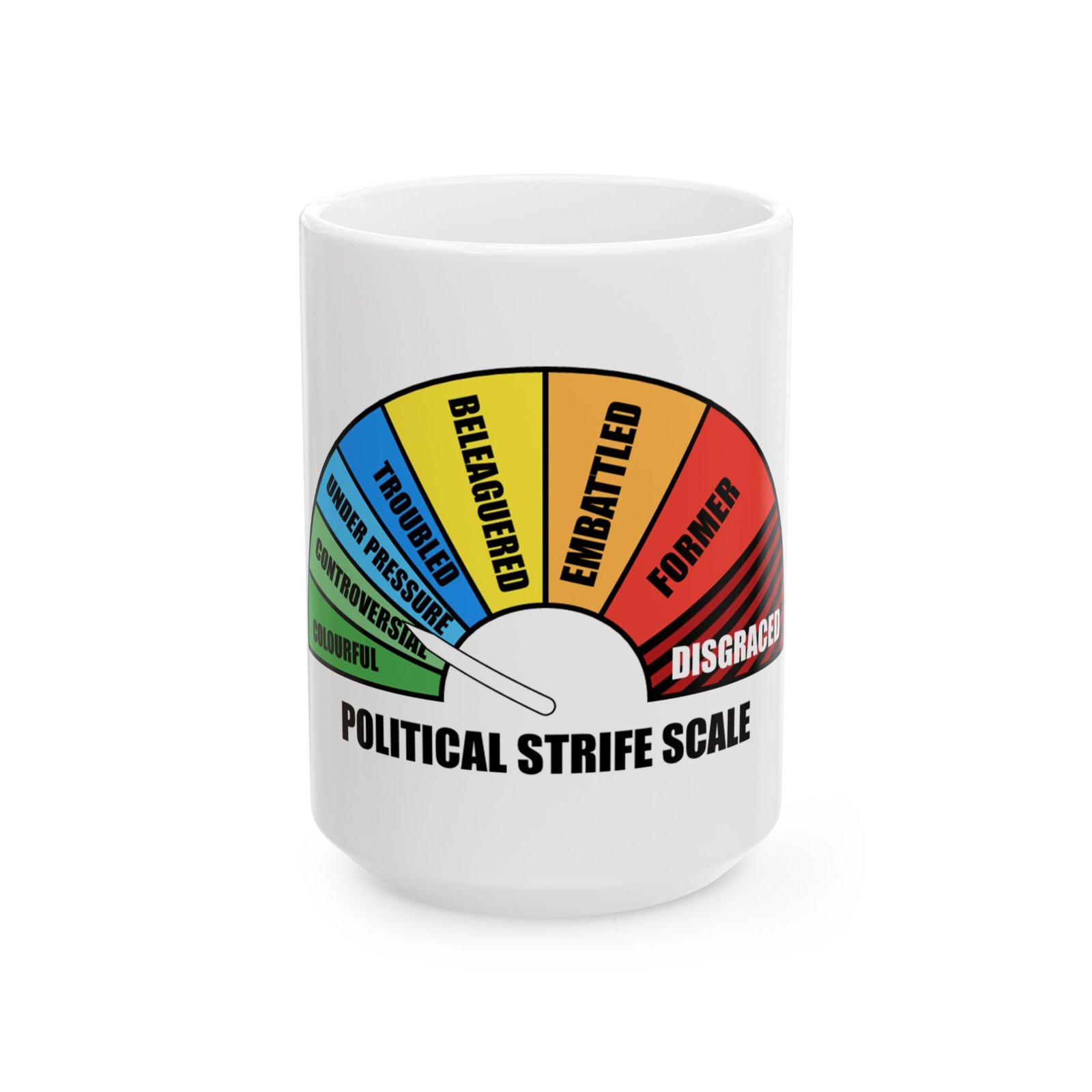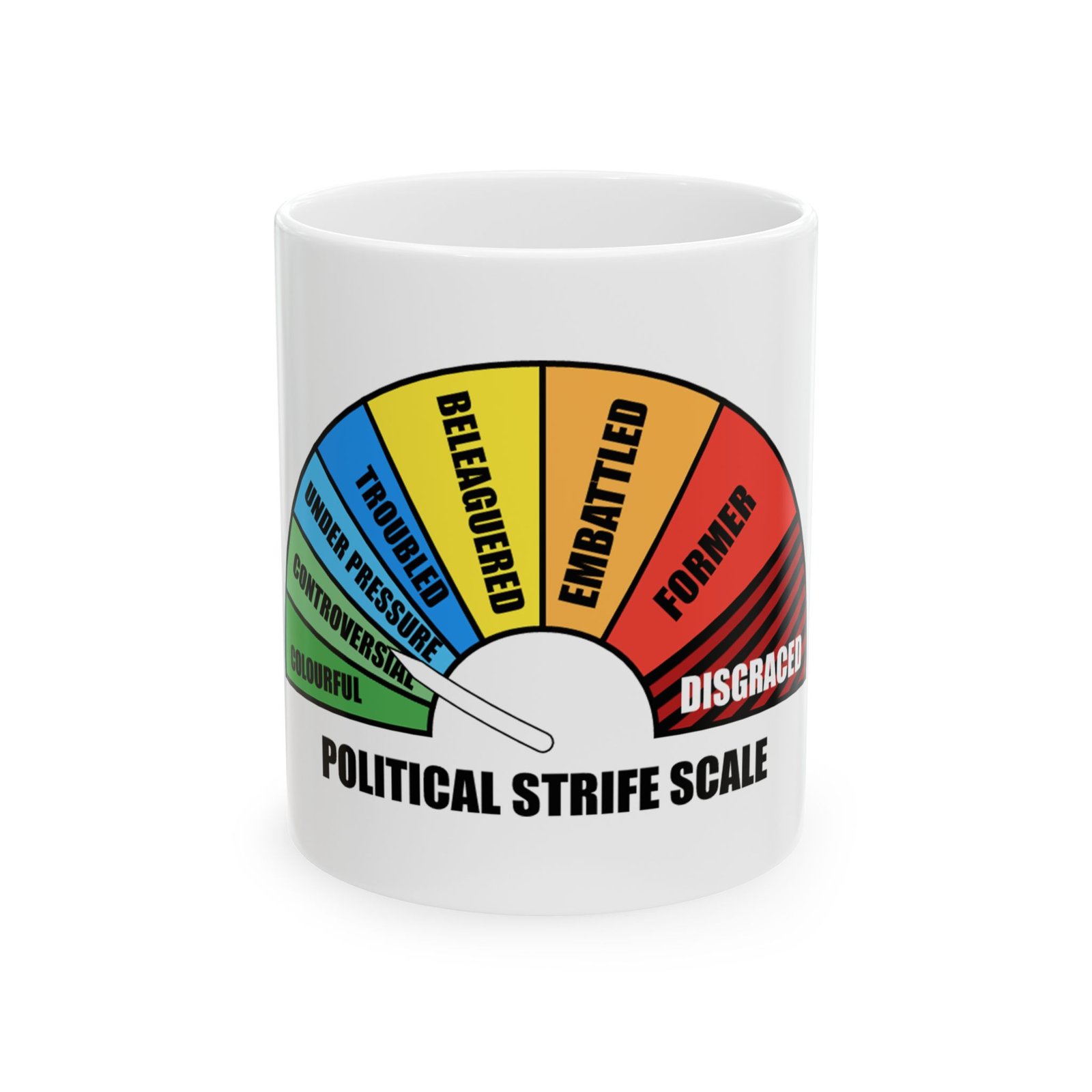 Sip with a smile using this Political Strife Scale Mug—perfect for anyone who loves humor, debates, or a playful take on politics. Great gift for political junkies and coffee lovers alike!