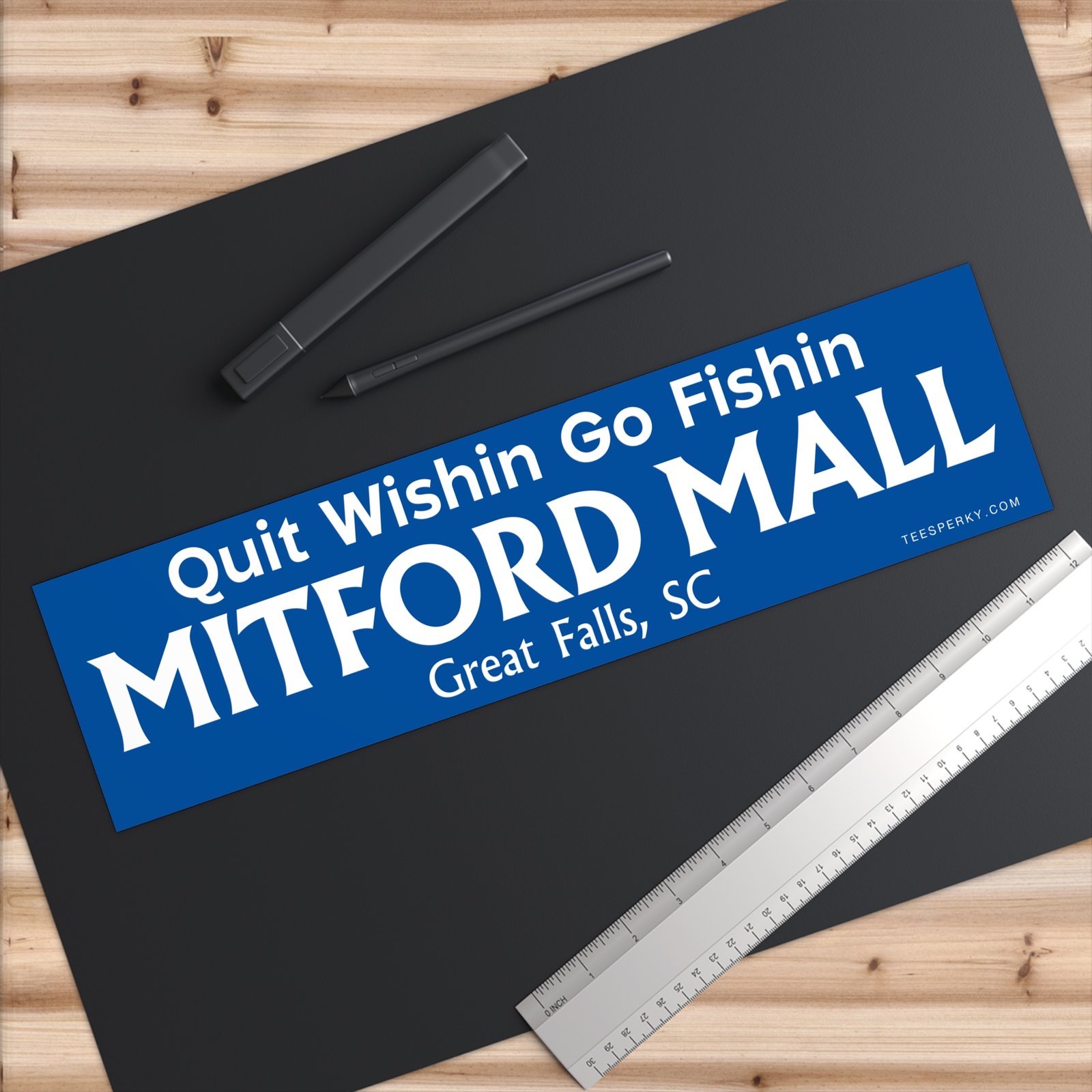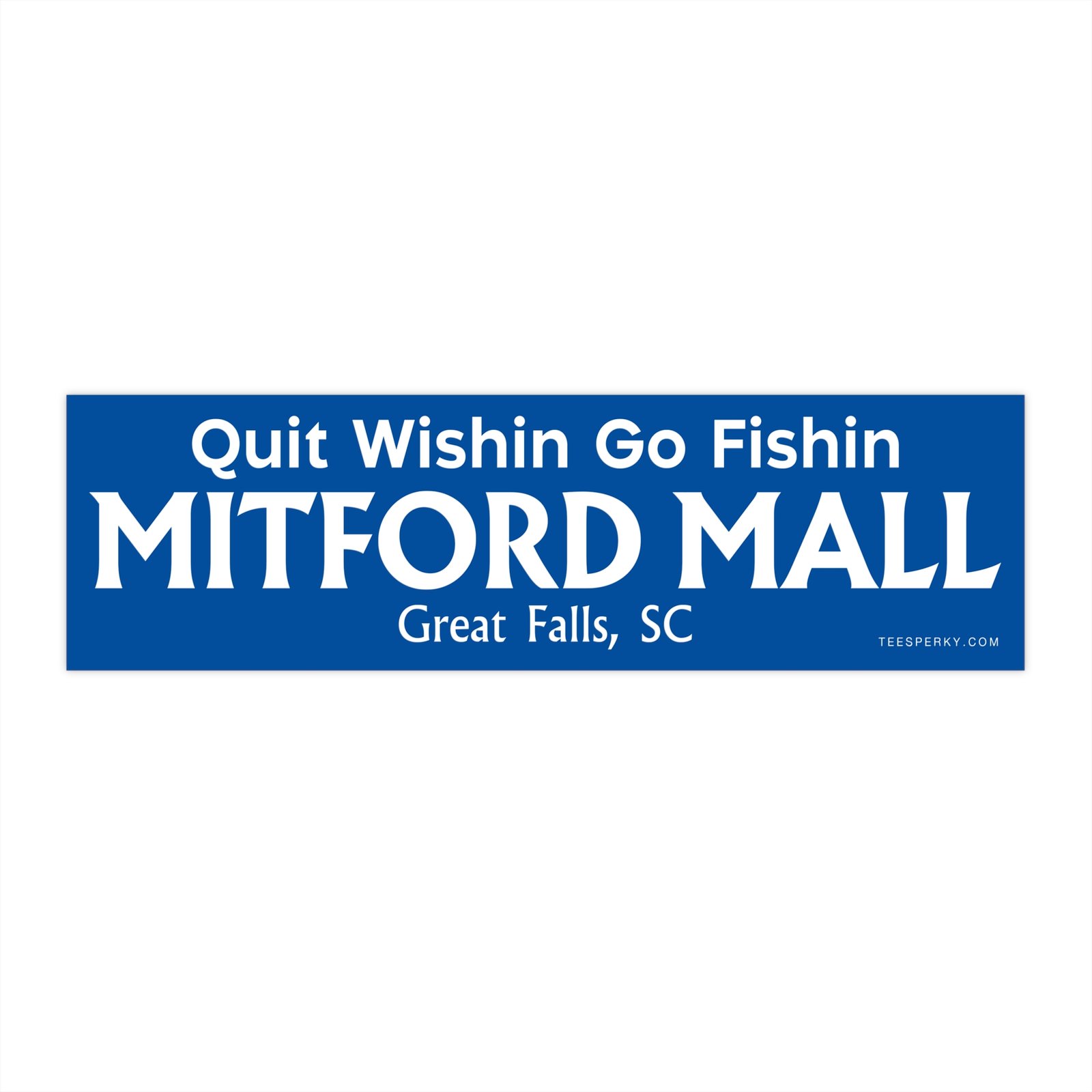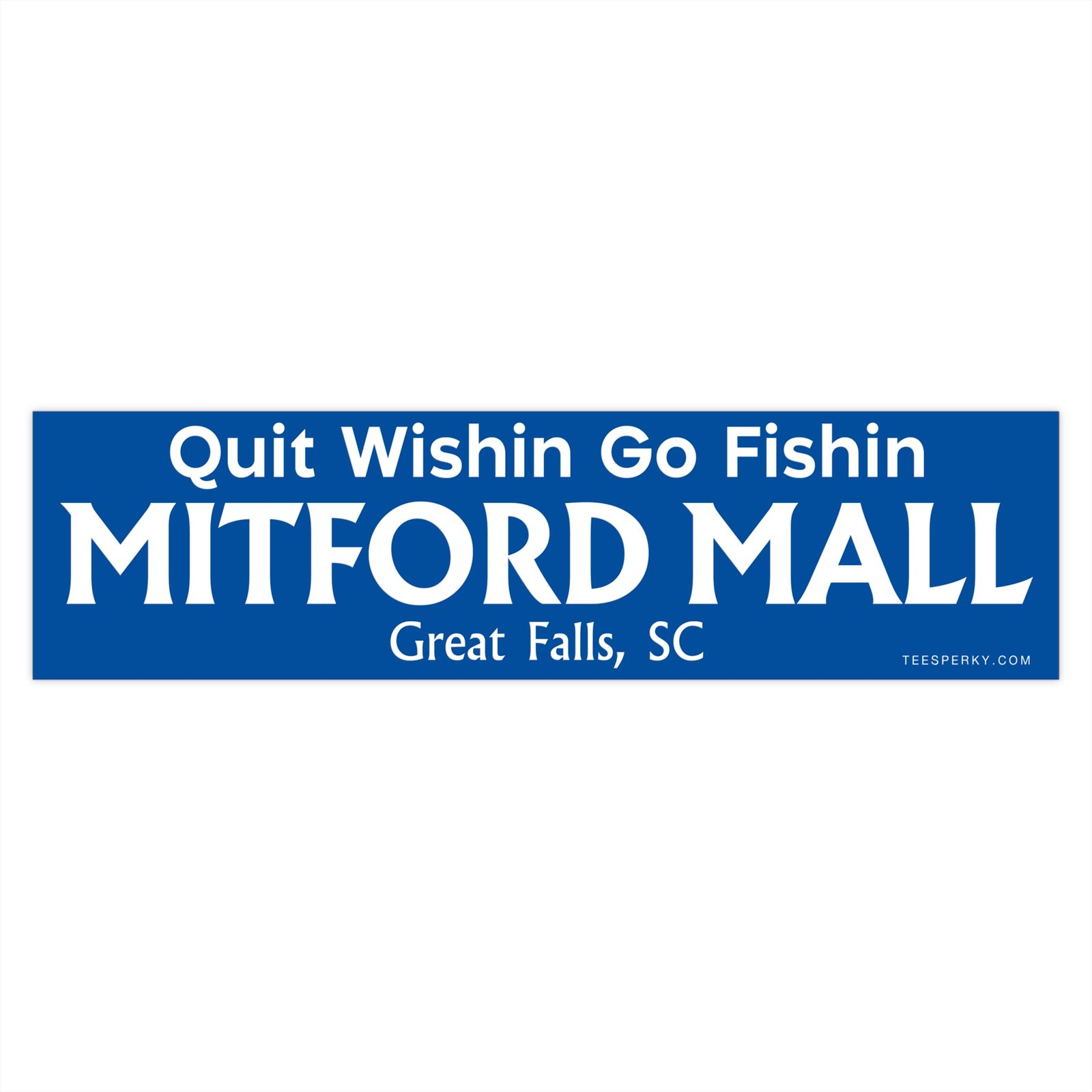 Show off your fishing passion with this “Quit Wishin Go Fishin” bumper sticker featuring Mitford Mall, Great Falls, South Carolina. Perfect for anglers, outdoor enthusiasts, and locals who love fishing near Great Falls SC. Durable, waterproof vinyl decal fits cars, trucks, tackle boxes, coolers, or boats. Makes a great gift for fishermen, bass anglers, and anyone proud of South Carolina fishing culture. Ideal for representing your favorite fishing spot, supporting local pride, and adding personality to your gear or vehicle.