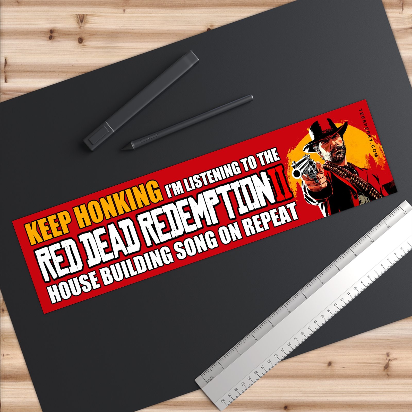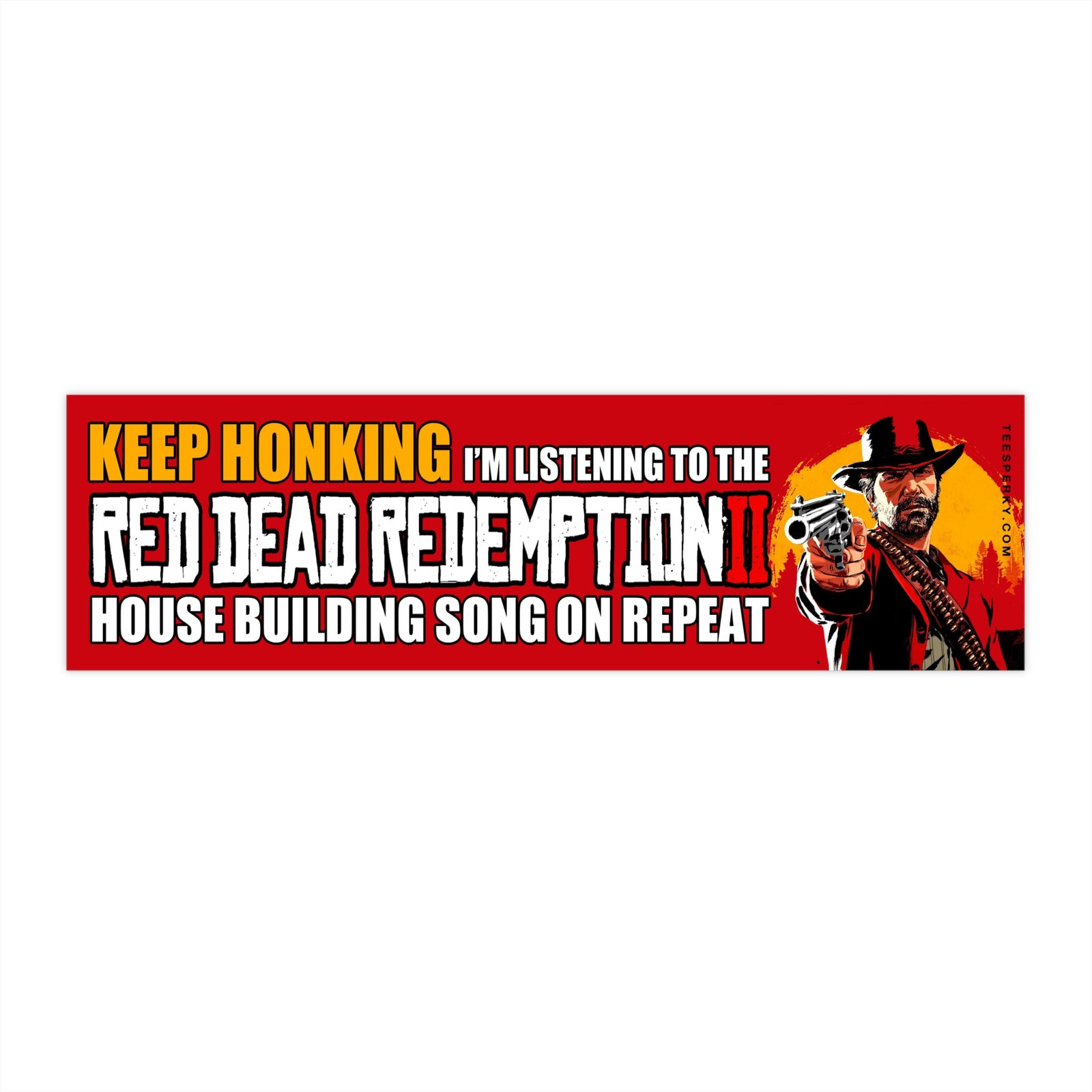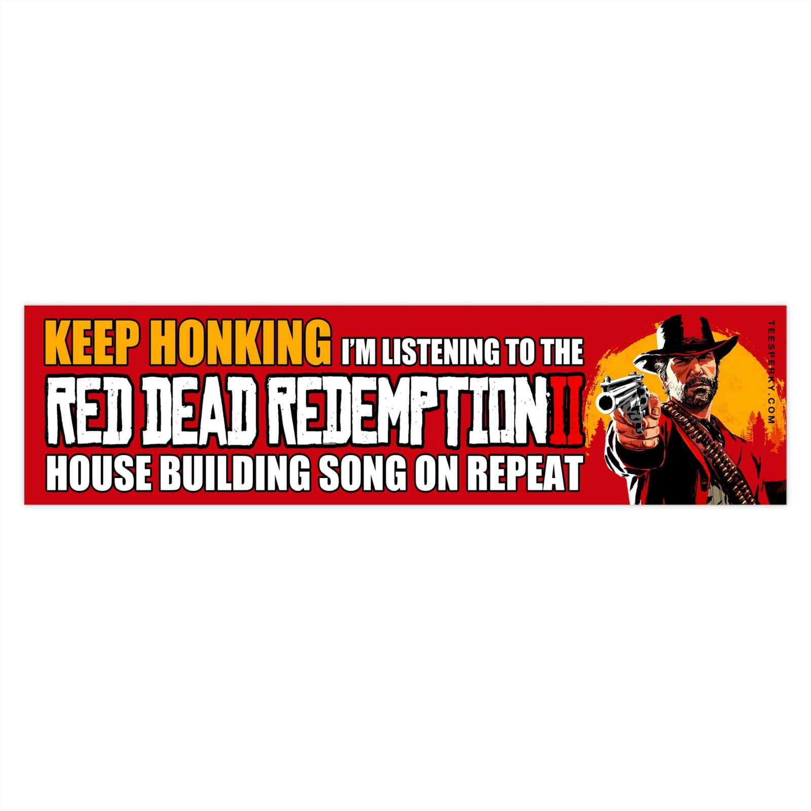 Show off your gamer pride with this funny “Keep Honking I’m Listening to the Red Dead Redemption 2 House Building Song on repeat” bumper sticker. Perfect gift for RDR2 fans, Arthur Morgan lovers, and video game music enthusiasts who can’t get enough of the House Building Song. Durable vinyl car decal for gamers, commuters, and collectors. Great for cars, laptops, water bottles, or gaming setups. Celebrate Rockstar Games, Red Dead Redemption 2 soundtrack, and your love for classic gaming culture with this hilarious conversation-starting sticker.