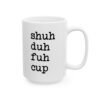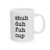 Shuh Duh Fuh Cup mug is a hilarious novelty coffee mug that makes the perfect gag gift for friends, coworkers, or family. This funny ceramic coffee cup is ideal for mornings, office humor, birthday gifts, Christmas presents, or prank surprises. Durable and dishwasher safe, this sarcastic joke mug will brighten your coffee break and make everyone laugh. Perfect for tea, hot chocolate, or coffee lovers with a sense of humor.