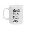 Shuh Duh Fuh Cup mug is a hilarious novelty coffee mug that makes the perfect gag gift for friends, coworkers, or family. This funny ceramic coffee cup is ideal for mornings, office humor, birthday gifts, Christmas presents, or prank surprises. Durable and dishwasher safe, this sarcastic joke mug will brighten your coffee break and make everyone laugh. Perfect for tea, hot chocolate, or coffee lovers with a sense of humor.