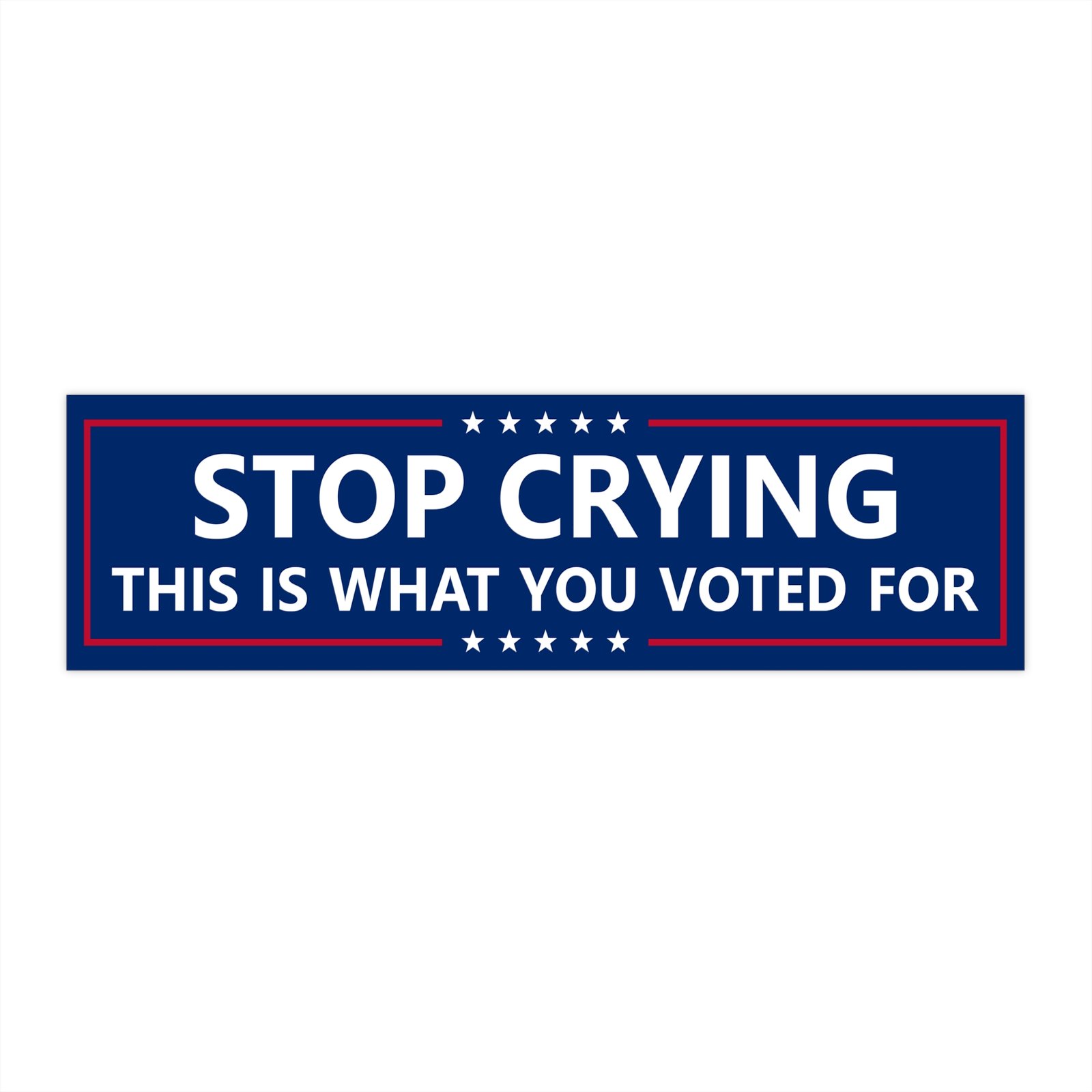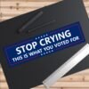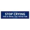 “Stop Crying This Is What You Voted For” political bumper sticker is a bold, sarcastic statement for cars, trucks, and laptops. Perfect for political satire lovers, conservative humor fans, libertarians, or anyone with a sharp sense of humor. Makes a great anti-establishment car decal, protest sticker, or funny gift. Durable vinyl decal applies easily to any surface—stand out on the road with this edgy political design. Ideal for free speech advocates and social commentary lovers.