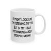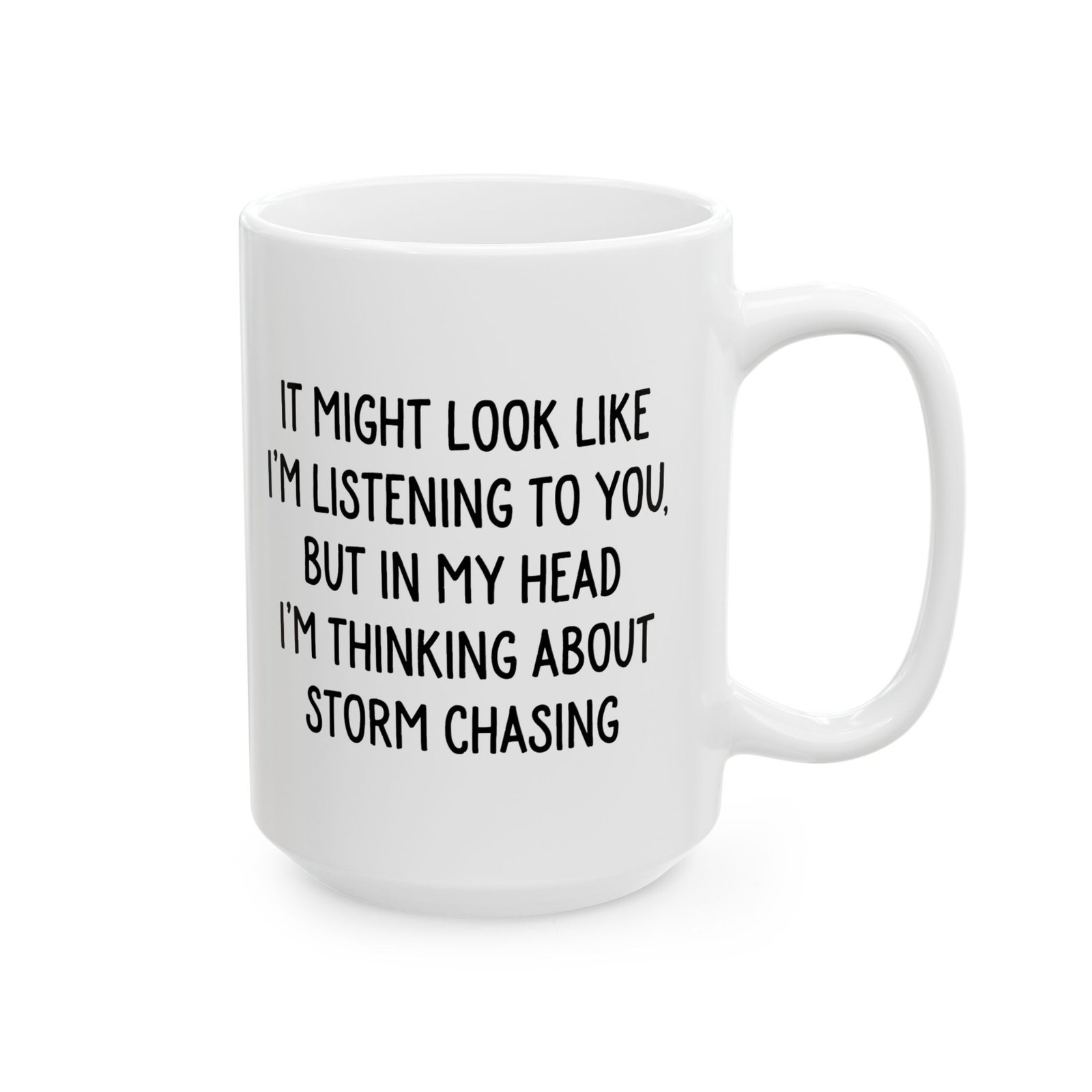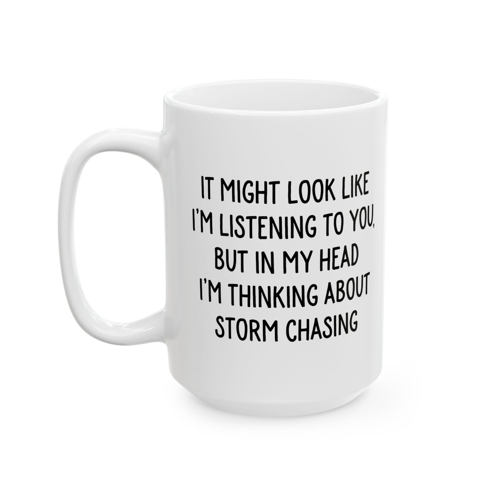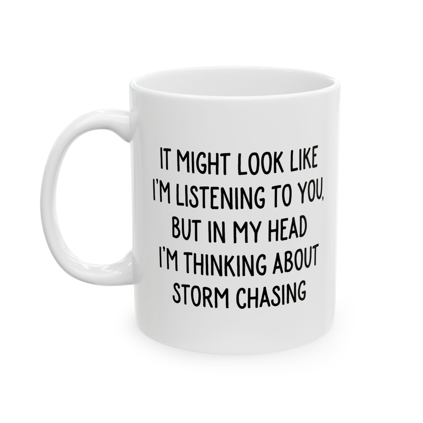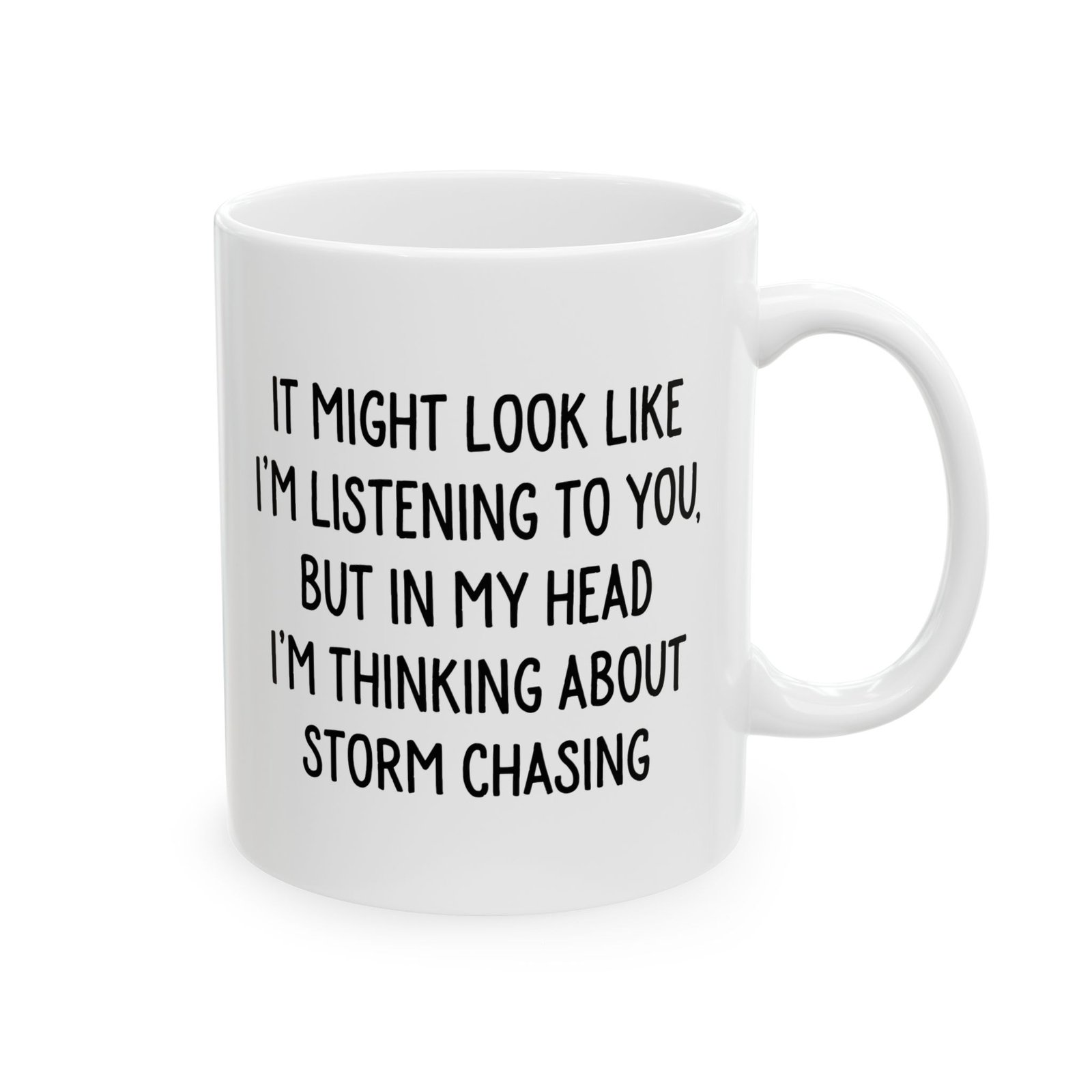 It might look like I’m listening to you, but in my head I’m thinking about storm chasing mug is the perfect gift for weather lovers, tornado chasers, meteorology fans, and coffee drinkers with a sense of humor. Funny storm chasing coffee mug for storm spotters, weather geeks, sky watchers, storm photography enthusiasts, and anyone obsessed with severe weather. Durable ceramic cup with hilarious listening joke design, ideal for coffee, tea, or hot cocoa. Great birthday gift, storm chasing crew gear, or gag gift for weather nerds who love tornadoes, hurricanes, and chasing storms.