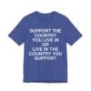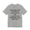 Patriotic “Support the Country You Live in or Live in the Country You Support” T-shirt is a bold statement for men and women who love freedom, America, and national pride. Perfect political shirt for rallies, Independence Day, Memorial Day, Veterans Day, or everyday wear. This patriotic USA tee makes a great gift for veterans, soldiers, military families, conservatives, and anyone who values liberty. High-quality cotton shirt with strong message, ideal for casual wear, protests, or showing pride in your country.