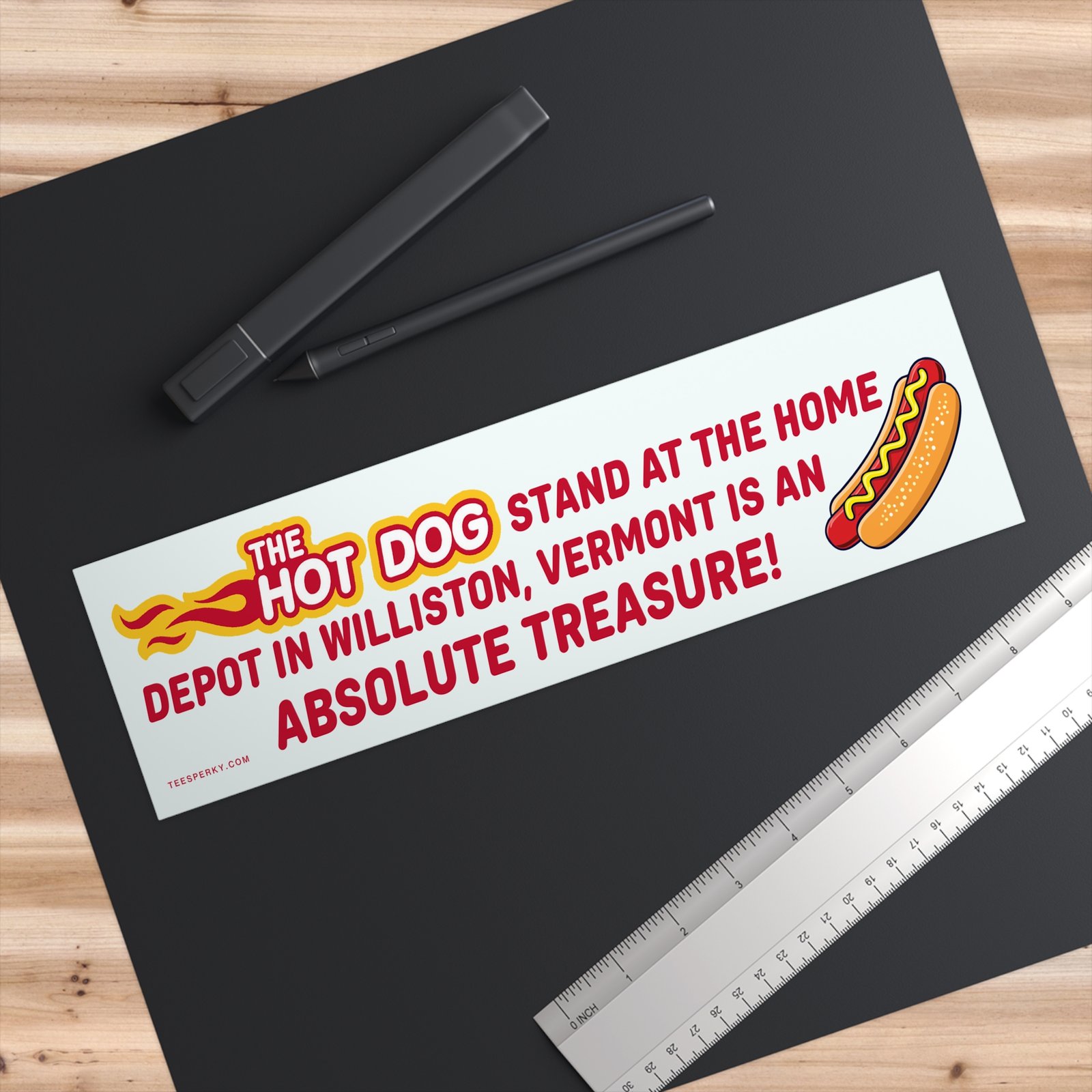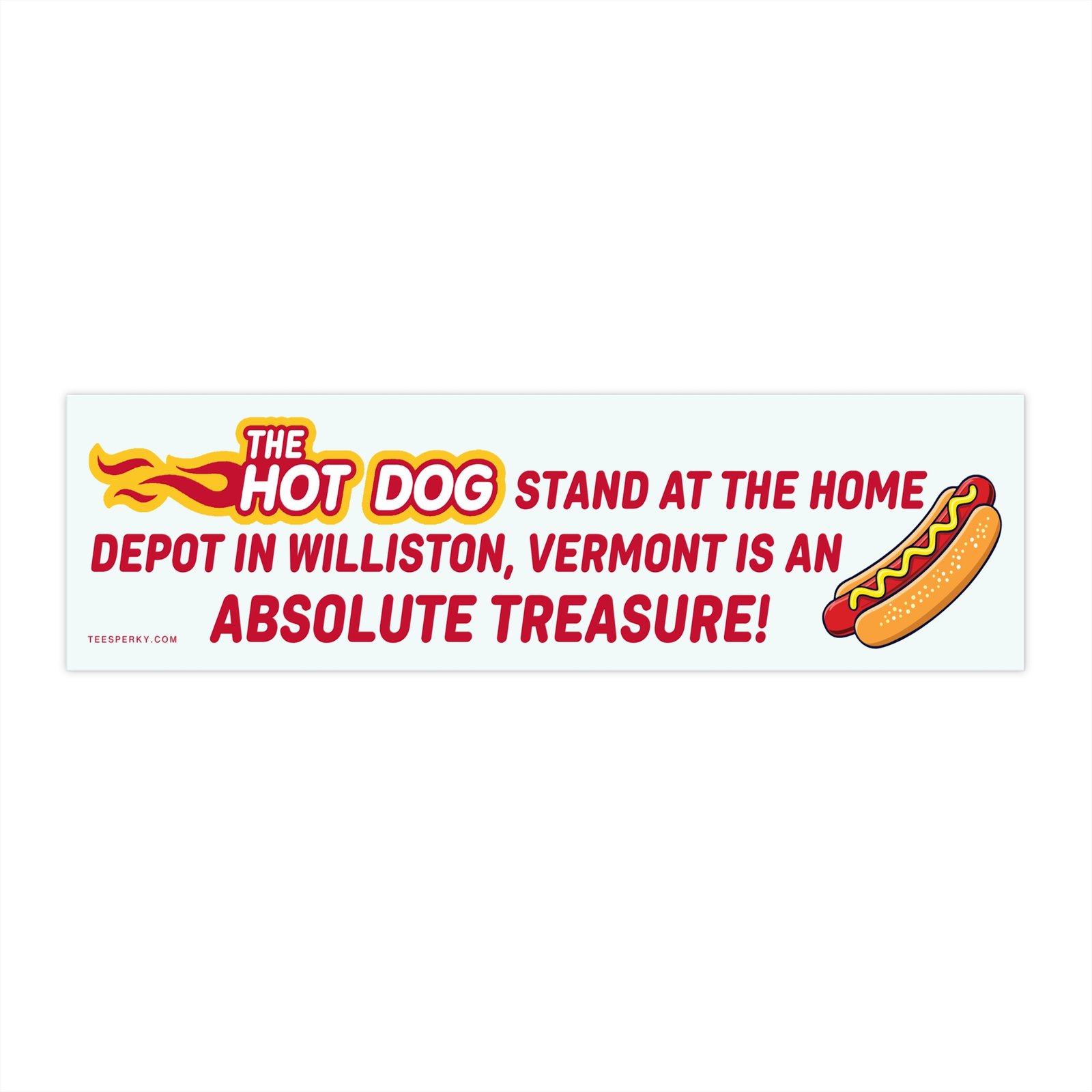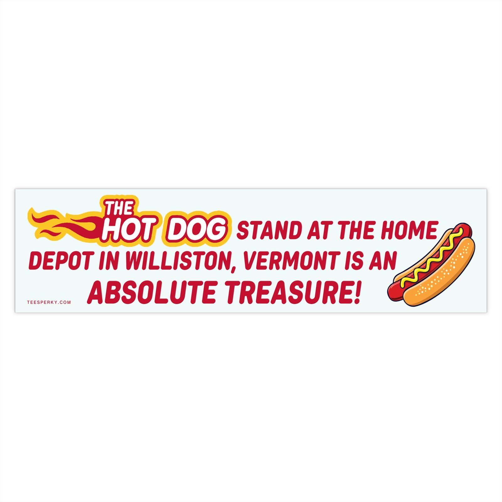 “The Hot Dog Stand at the Home Depot in Williston, Vermont is an Absolute Treasure!” bumper sticker celebrates a local favorite snack spot. Perfect for food lovers, Vermont locals, travelers, and hot dog humor fans. Durable vinyl car decal for trucks, SUVs, vans, or laptops. Great novelty gift for Home Depot shoppers, Williston residents, or anyone who appreciates delicious hot dogs and quirky regional pride. Fun, eye-catching design for road trips, foodie friends, and humor collectors.