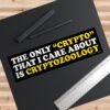 The Only Crypto That I Care About Is Cryptozoology bumper sticker combines funny Bigfoot humor and anti-cryptocurrency jokes. Perfect cryptozoology car decal for skeptics, crypto critics, Bigfoot believers, Nessie lovers, and Mothman fans. Durable vinyl sticker for cars, laptops, SUVs, trucks, water bottles, and windows. Makes a unique gift for cryptid enthusiasts, paranormal fans, and anyone who loves hilarious novelty car accessories with a nerdy twist.