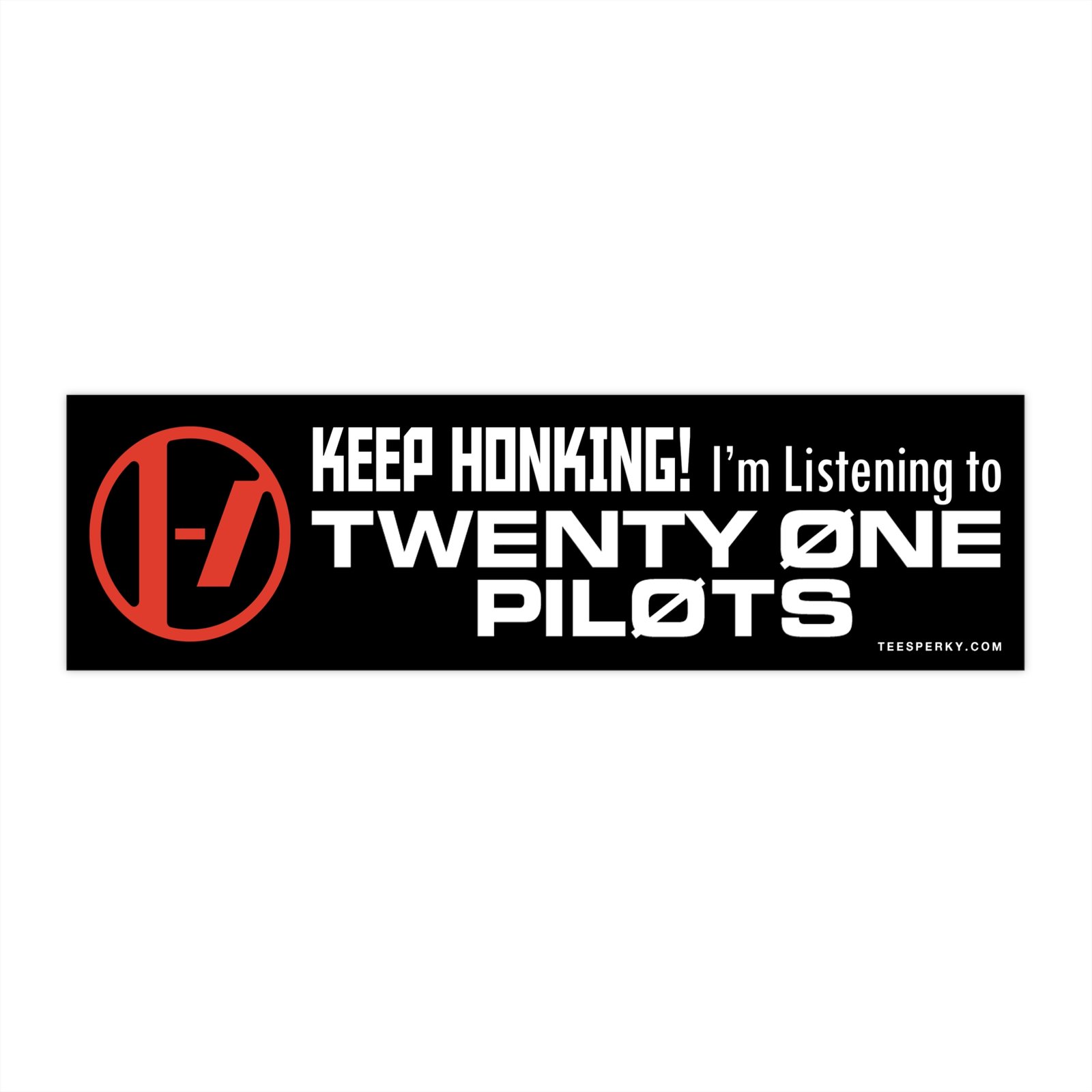 Show off your love for Twenty One Pilots with this “Keep Honking I’m Listening to Twenty One Pilots” bumper sticker. Perfect for TOP fans, car enthusiasts, and music lovers who can’t stop blasting their favorite songs on the road. Great gift for alternative rock fans, emo pop fans, and anyone who loves Josh Dun and Tyler Joseph’s music. High-quality, weatherproof vinyl decal for cars, laptops, water bottles, or guitar cases. Make fellow Skeleton Clique members smile, rep your favorite band, and add a touch of humor to your daily commute or road trip.