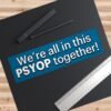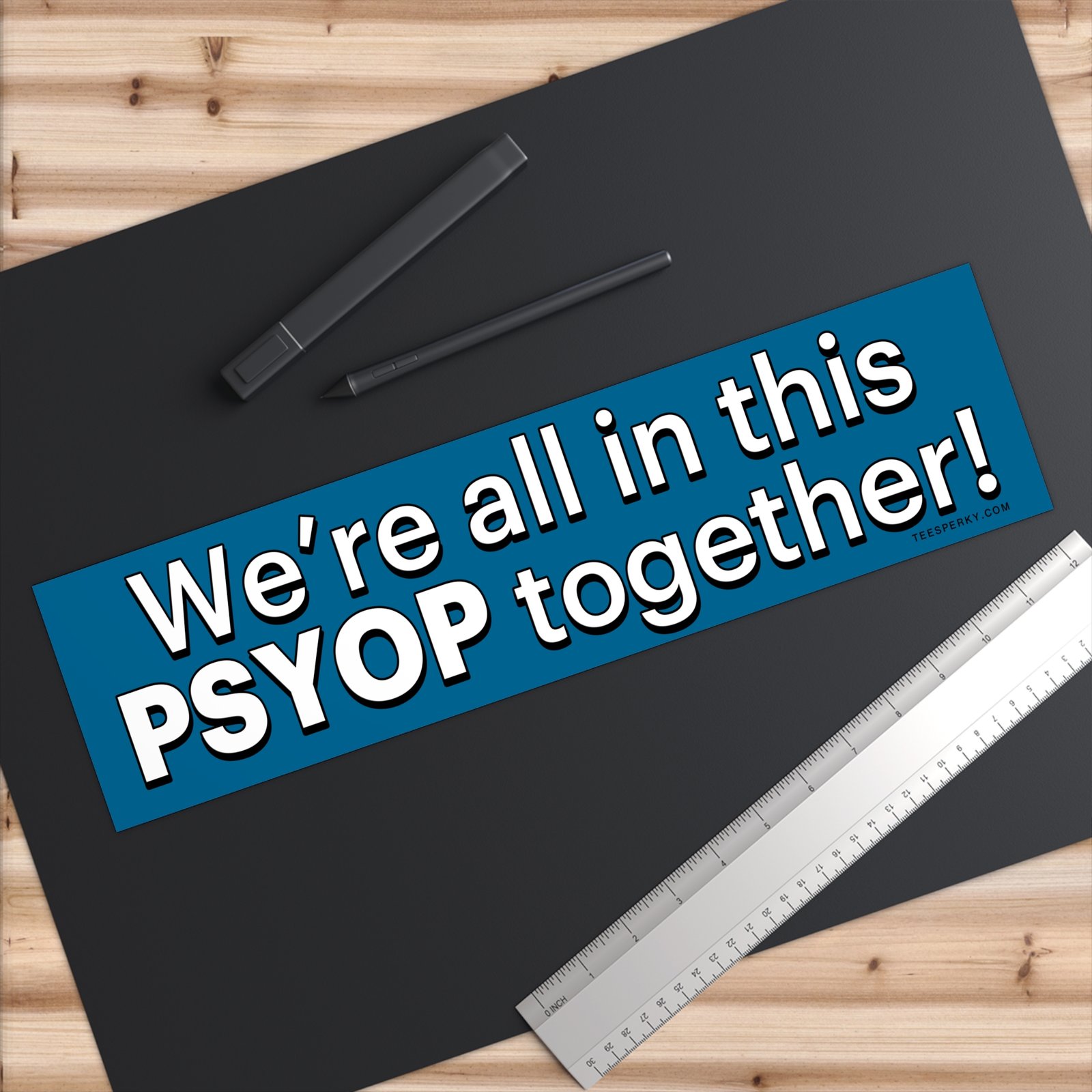 “We’re All in This PSYOP Together!” — this edgy bumper sticker combines humor, paranoia, and cultural commentary in one bold design. Whether you’re poking fun at conspiracy culture or making a deeper point about media and society, this sticker is a guaranteed conversation starter. Durable, waterproof, and perfect for cars, laptops, or anywhere you want to drop some satirical truth.